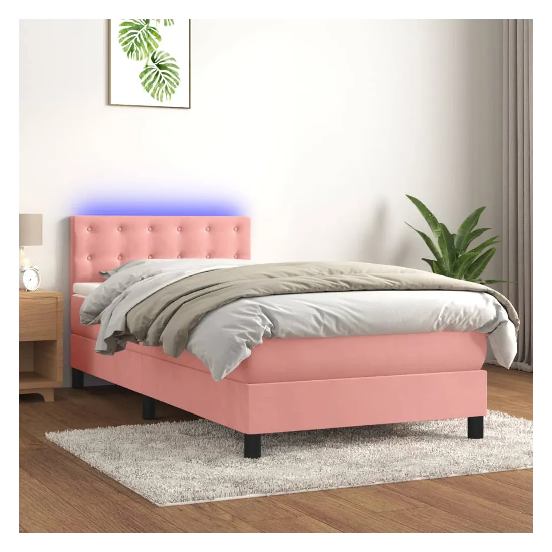 Utilisez ce sommier tapissier avec matelas et LED pour profiter d'un sommeil réparateur ! C'est le point central de votre chambre à coucher. Velours doux : le velours est un tissu doux et luxueux qui se reconnaît à son tas dense de fibres uniformément coupées qui ont une touche lisse. Le tissu en velours présente un toucher doux distinctif, ce qui le rend confortable au toucher.Tête de lit pratique : la tête de lit est réglable en hauteur selon vos préférences. La tête de lit vous offre un excellent soutien du dos lorsque vous êtes assis dans votre lit pour lire ou regarder la télévision.Bande LED colorée : apportez de l'éclairage dans l'obscurité avec des lumières LED colorées !Matelas à ressorts ensachés : le ressort ensaché individuel intégré est connu pour sa très haute qualité tout en assurant un haut niveau de durabilité et d'adaptabilité. Il peut absorber efficacement le bruit et les chocs causés par les sauts et les rotations.Protège-matelas doux pour la peau : le protège-matelas est recouvert d'un tissu résistant et doux pour la peau, ce qui le rend souple et confortable. Remarque :Pour des raisons d'hygiène, le matelas ne peut pas être retourné si l'emballage est retiré ou ouvert.Chaque produit est livré avec un manuel de montage dans la boîte pour un montage facile.Seule la partie avec un symbole de ciseaux peut être coupée et seule la partie avec l'USB continuera à fonctionner comme avant.Ce produit est doté d'un connecteur USB, mais la source d'alimentation certifiée de USB 5V n'est pas incluse.