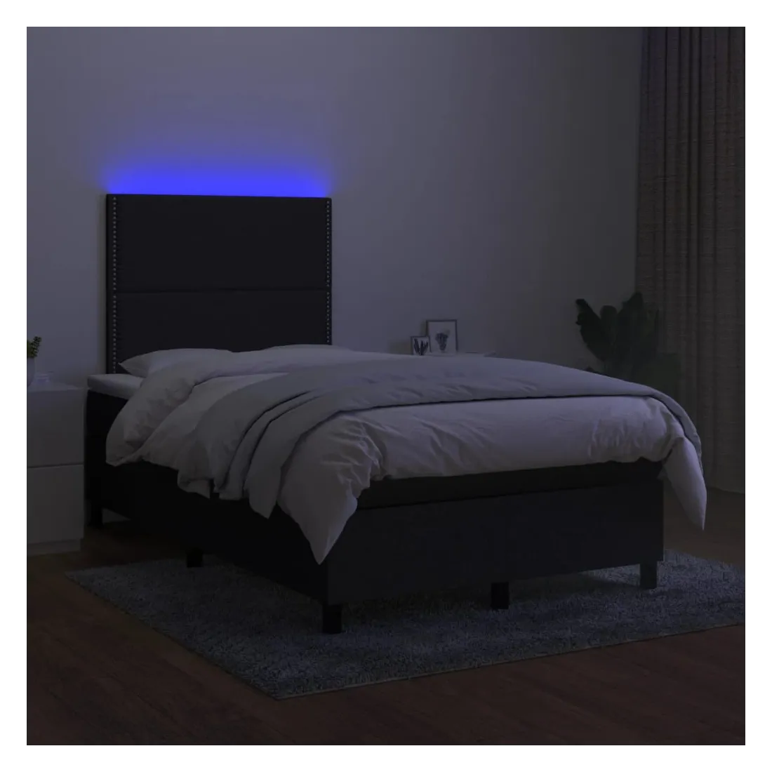 Sommier à lattes de lit et matelas et LED Noir 120x200 cm Tissu