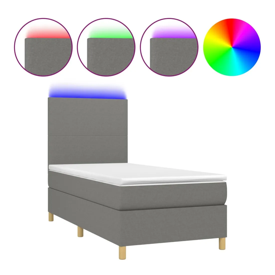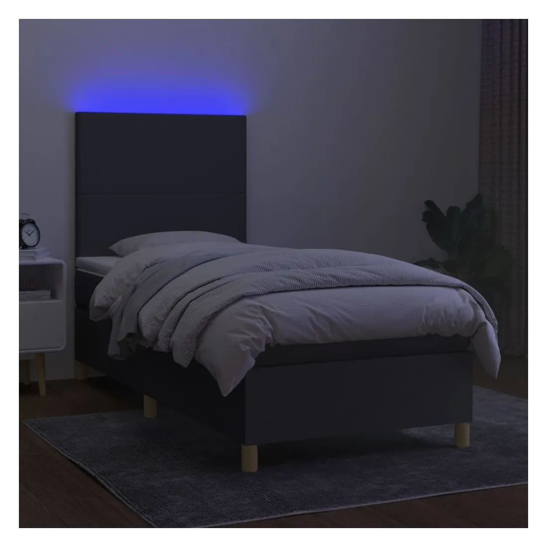 Sommier à lattes de lit avec matelas et LED Gris foncé 90x190cm