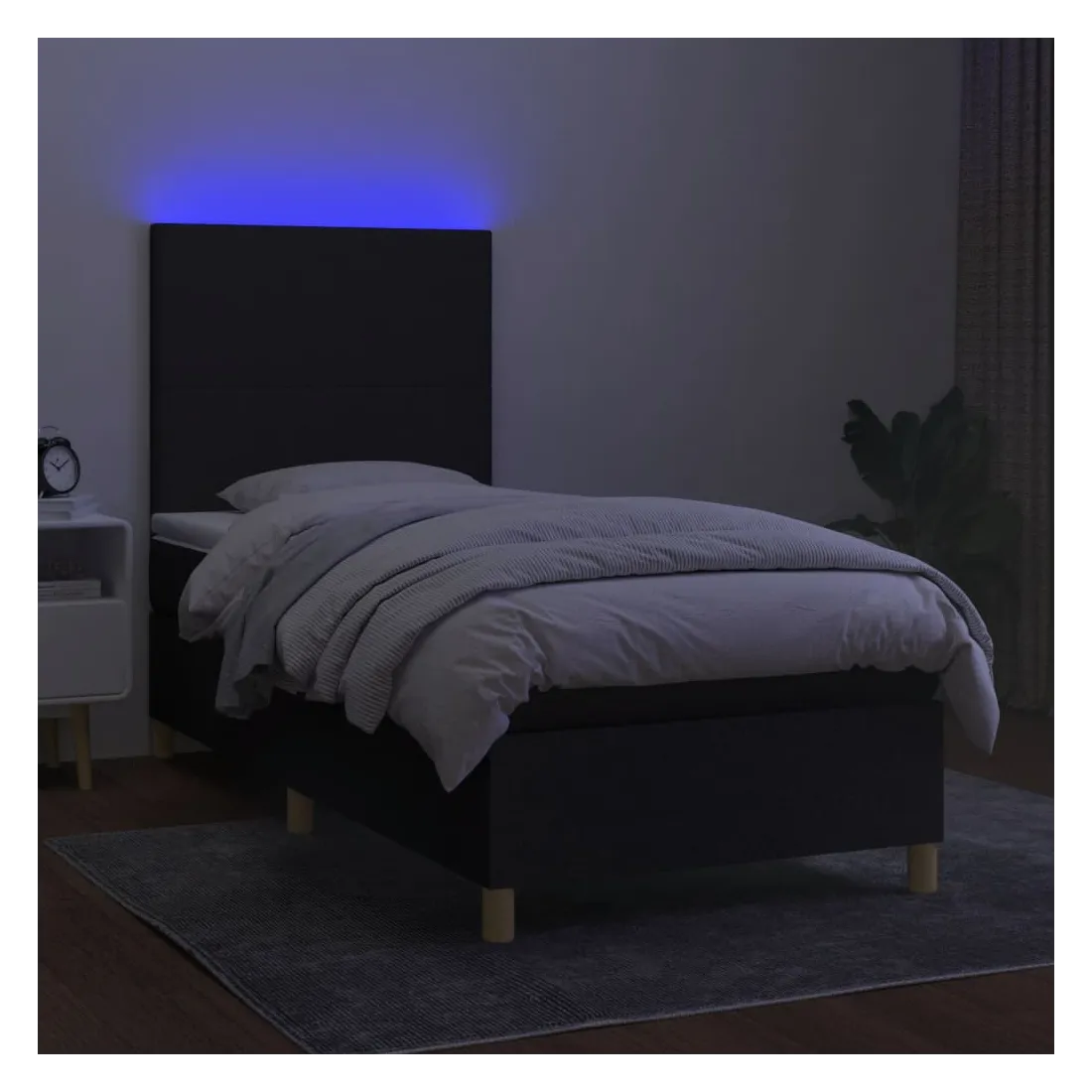 Sommier à lattes de lit avec matelas et LED Noir 90x200cm Tissu