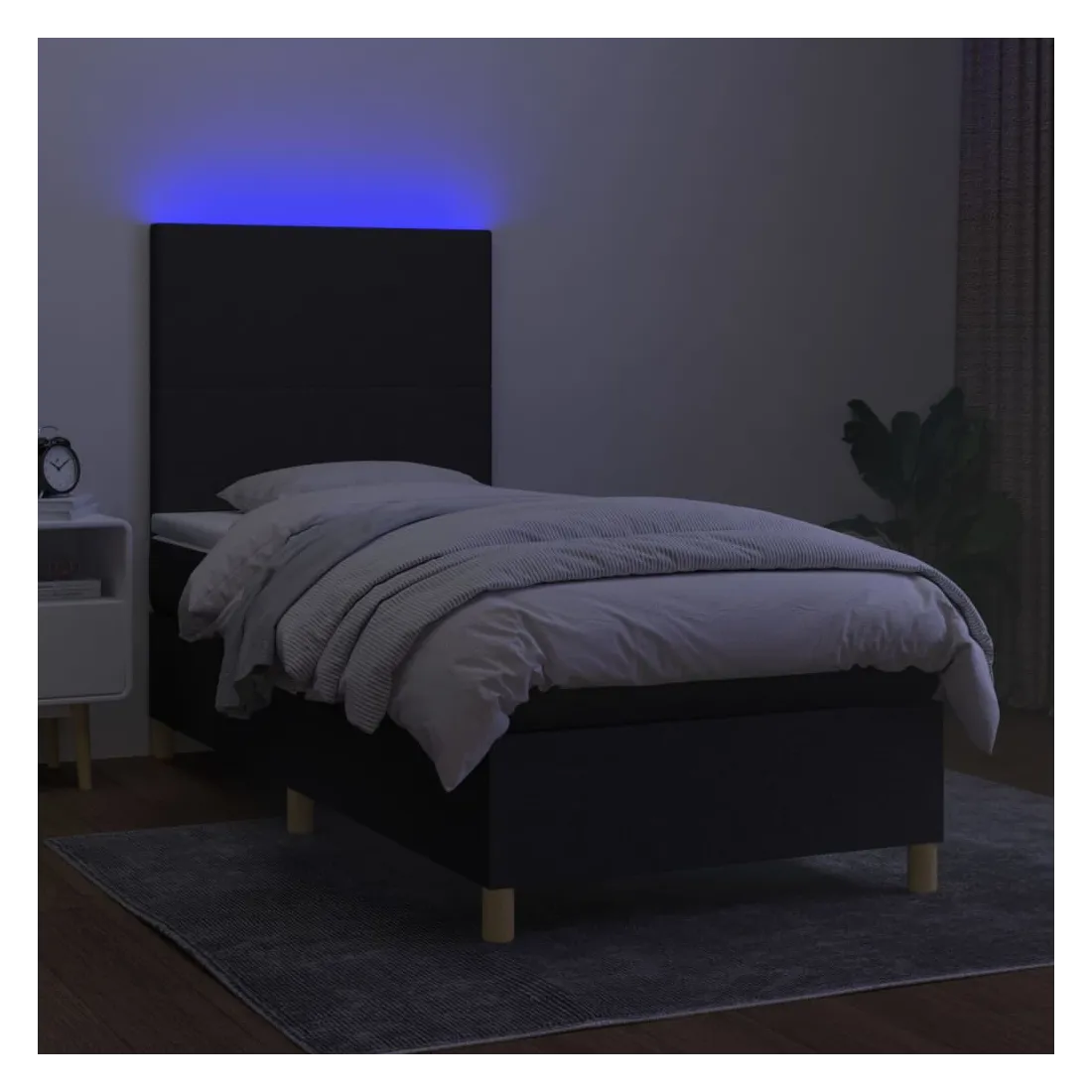 Utilisez ce sommier tapissier avec matelas et LED pour profiter d'un sommeil réparateur ! C'est le point central de votre chambre à coucher. Tissu durable : le tissu présente un aspect simple et épuré, et il est respirant et durable.Tête de lit pratique : la tête de lit est réglable en hauteur selon vos préférences. La tête de lit vous offre un excellent soutien du dos lorsque vous êtes assis dans votre lit pour lire ou regarder la télévision.Bande LED colorée : apportez de l'éclairage dans l'obscurité avec des lumières LED colorées !Matelas à ressorts ensachés : le ressort ensaché individuel intégré est connu pour sa très haute qualité tout en assurant un haut niveau de durabilité et d'adaptabilité. Il peut absorber efficacement le bruit et les chocs causés par les sauts et les rotations.Protège-matelas doux pour la peau : le protège-matelas est recouvert d'un tissu résistant et doux pour la peau, ce qui le rend souple et confortable. Remarque :Pour des raisons d'hygiène, le matelas ne peut pas être retourné si l'emballage est retiré ou ouvert.Seule la partie avec un symbole de ciseaux peut être coupée et seule la partie avec l'USB continuera à fonctionner comme avant.Chaque produit est livré avec un manuel de montage dans la boîte pour un montage facile.Ce produit est doté d'un connecteur USB, mais la source d'alimentation certifiée de USB 5V n'est pas incluse.