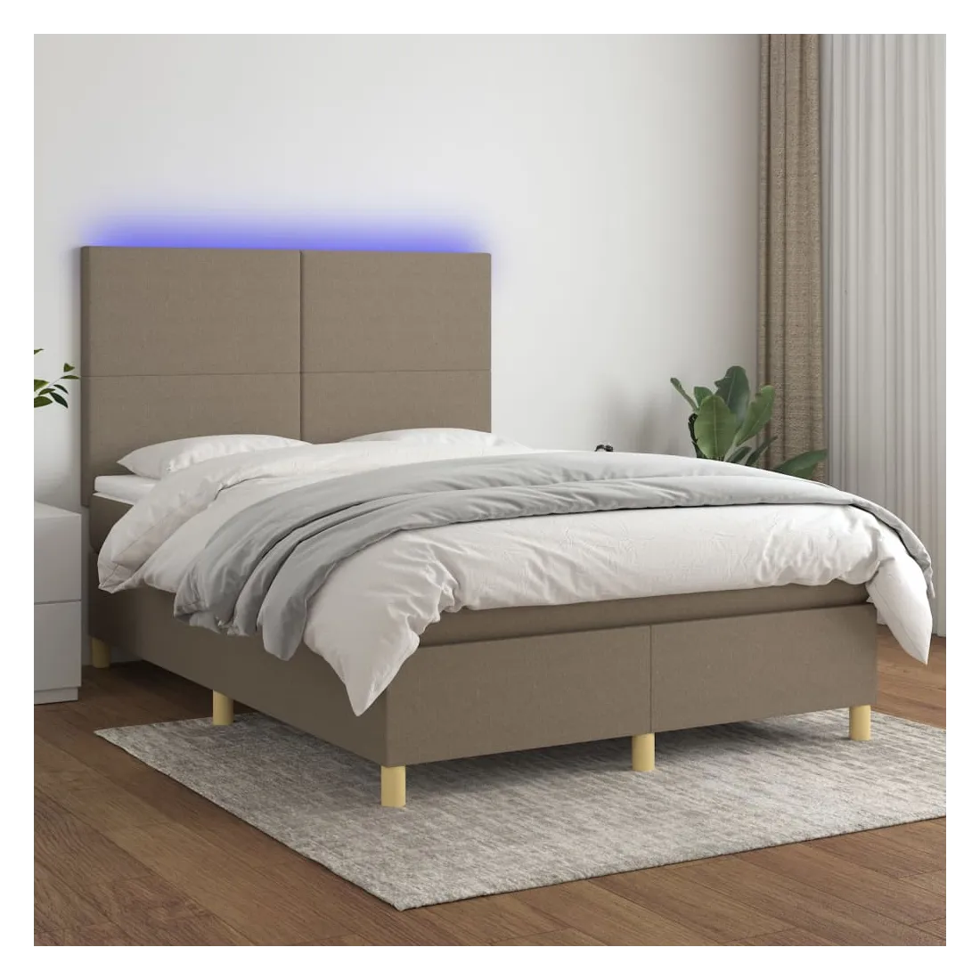 Sommier à lattes de lit et matelas et LED Taupe 140x190cm Tissu