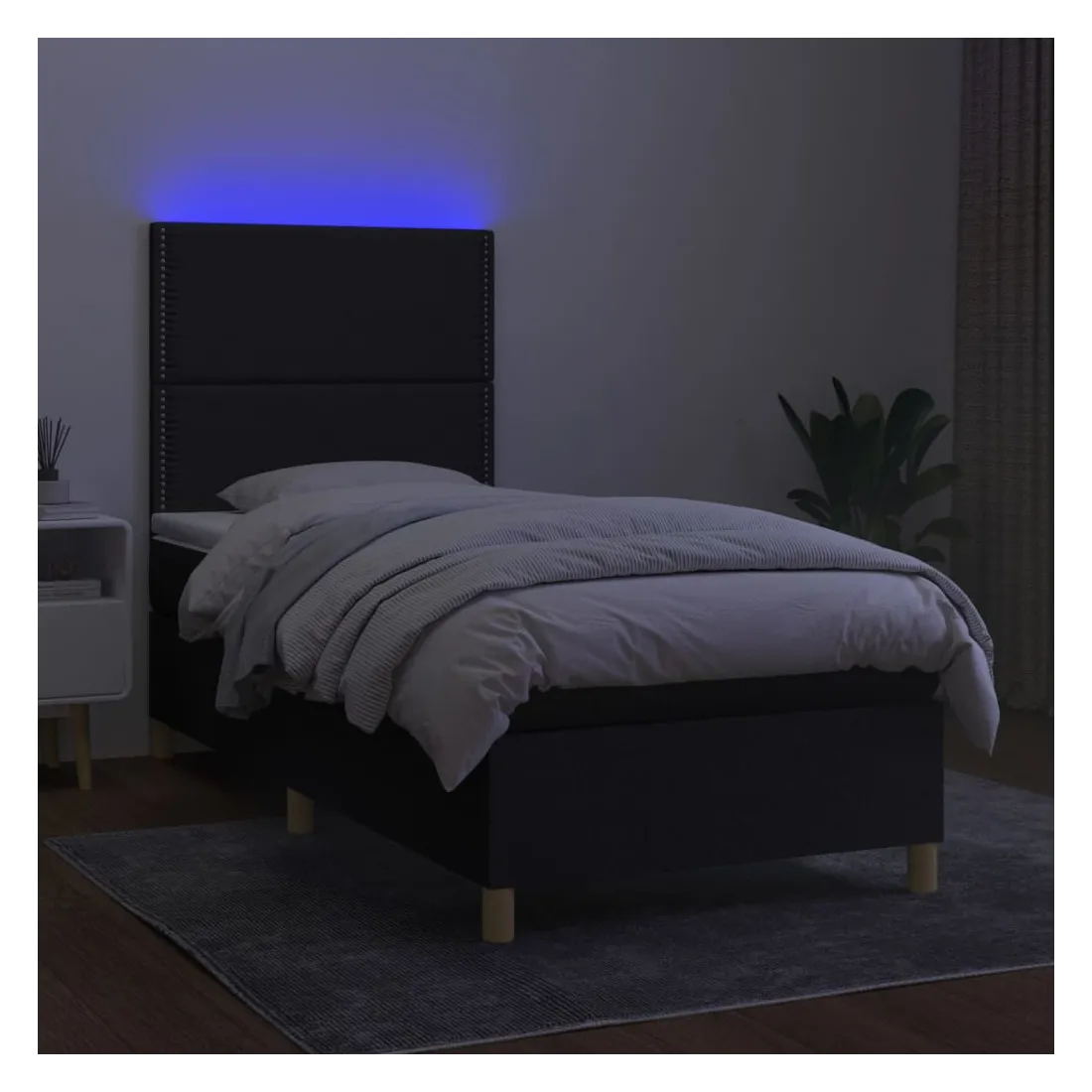 Utilisez ce sommier tapissier avec matelas et LED pour profiter d'un sommeil réparateur ! C'est le point central de votre chambre à coucher. Tissu durable : le tissu présente un aspect simple et épuré, et il est respirant et durable.Tête de lit pratique : la tête de lit est réglable en hauteur selon vos préférences. La tête de lit vous offre un excellent soutien du dos lorsque vous êtes assis dans votre lit pour lire ou regarder la télévision.Bande LED colorée : apportez de l'éclairage dans l'obscurité avec des lumières LED colorées !Matelas à ressorts ensachés : le ressort ensaché individuel intégré est connu pour sa très haute qualité tout en assurant un haut niveau de durabilité et d'adaptabilité. Il peut absorber efficacement le bruit et les chocs causés par les sauts et les rotations.Protège-matelas doux pour la peau : le protège-matelas est recouvert d'un tissu résistant et doux pour la peau, ce qui le rend souple et confortable. Remarque :Pour des raisons d'hygiène, le matelas ne peut pas être retourné si l'emballage est retiré ou ouvert.Seule la partie avec un symbole de ciseaux peut être coupée et seule la partie avec l'USB continuera à fonctionner comme avant.Chaque produit est livré avec un manuel de montage dans la boîte pour un montage facile.Ce produit est doté d'un connecteur USB, mais la source d'alimentation certifiée de USB 5V n'est pas incluse.