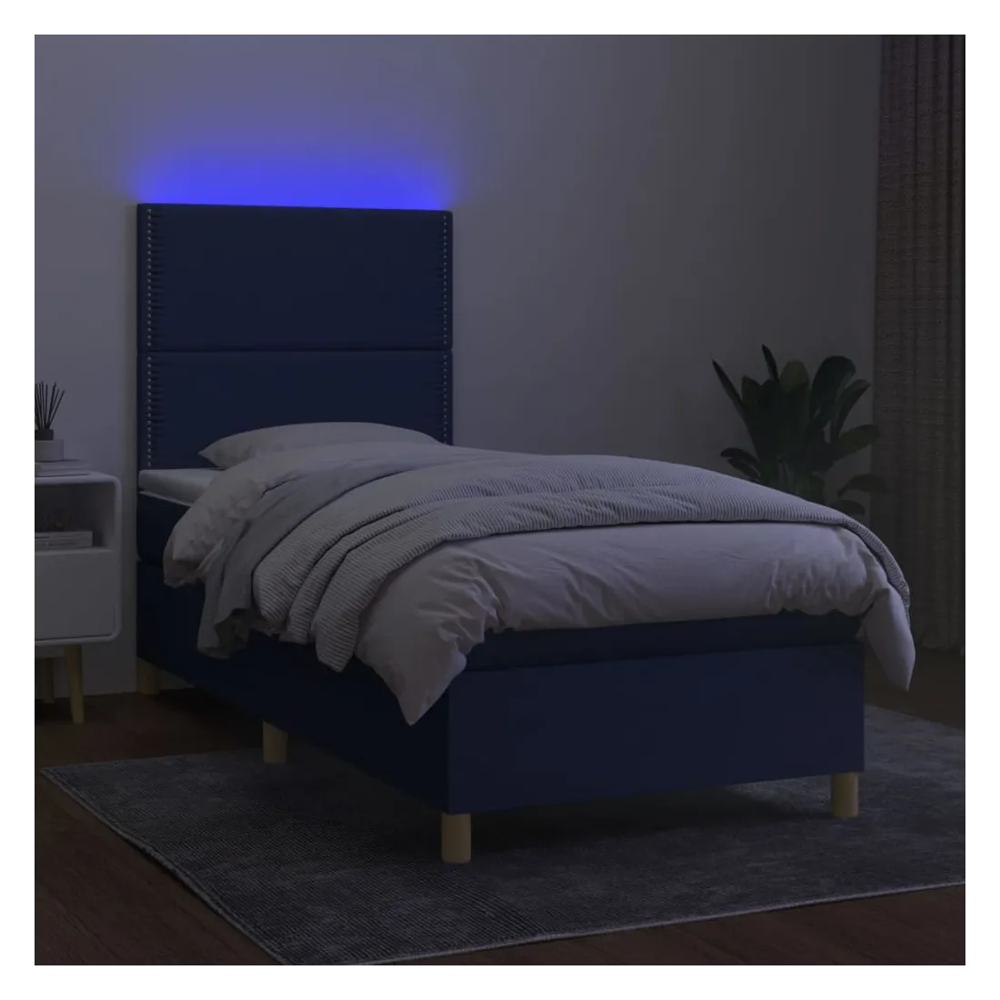 Sommier à lattes de lit avec matelas et LED Bleu 90x190cm Tissu