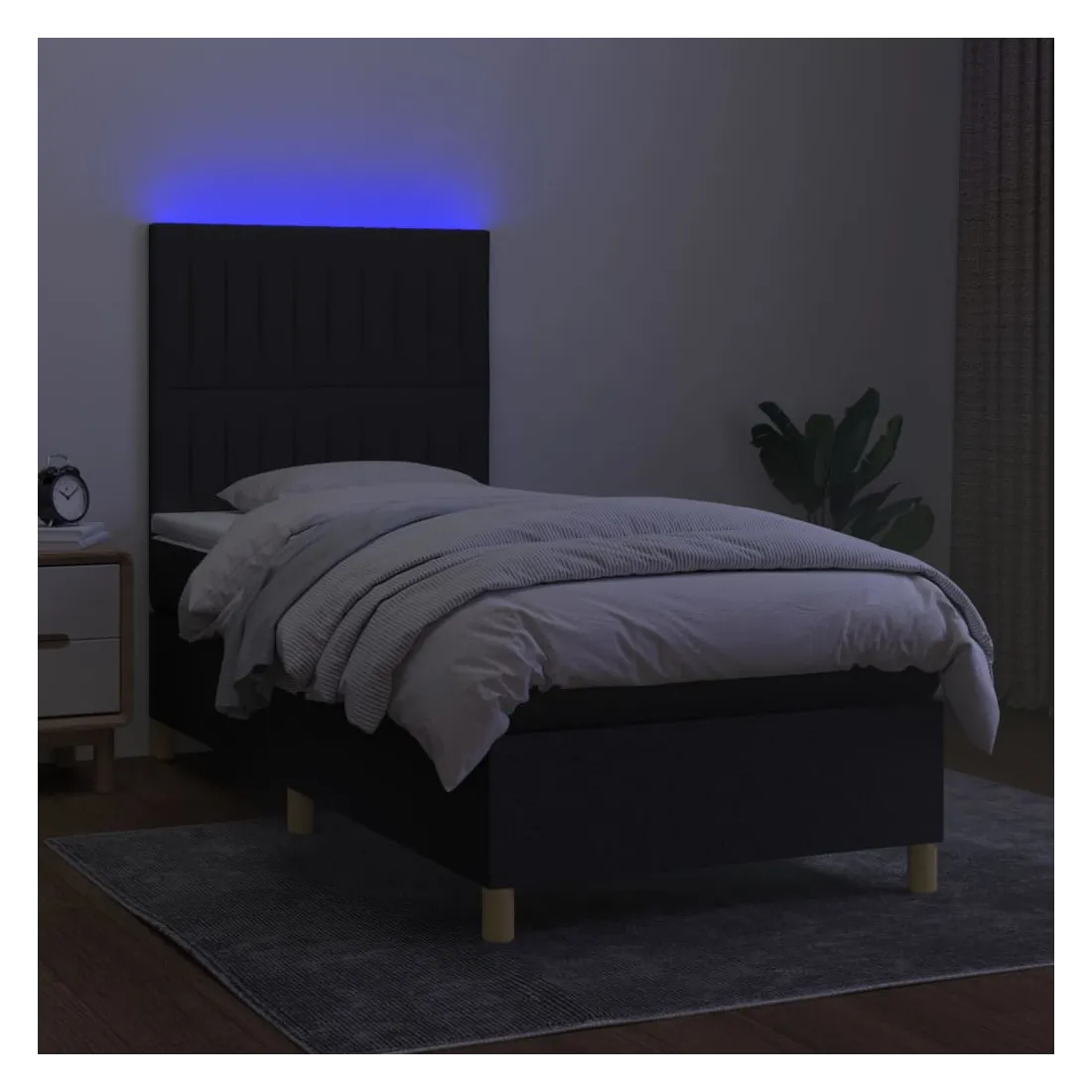 Sommier à lattes de lit et matelas et LED Noir 100x200 cm Tissu
