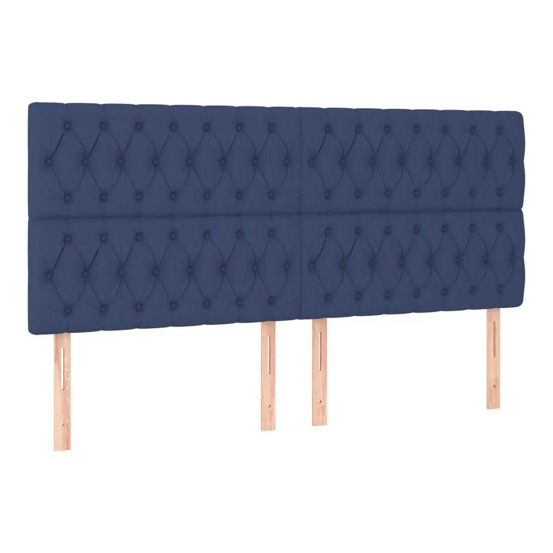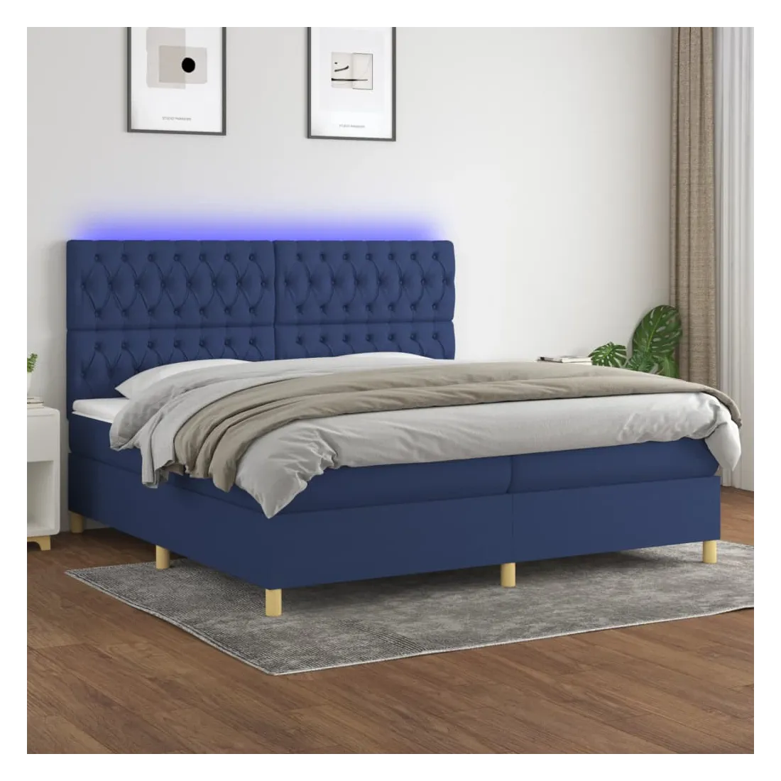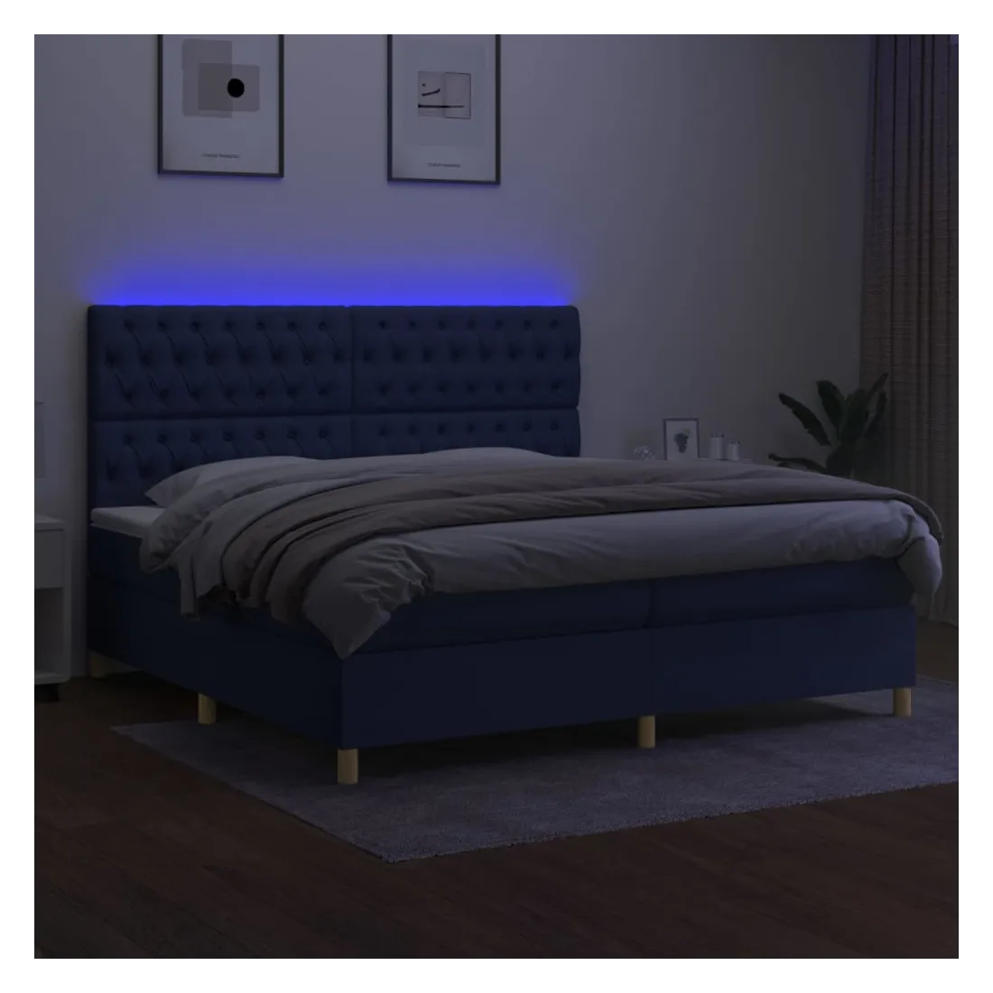 Sommier à lattes de lit et matelas et LED Bleu 200x200 cm Tissu