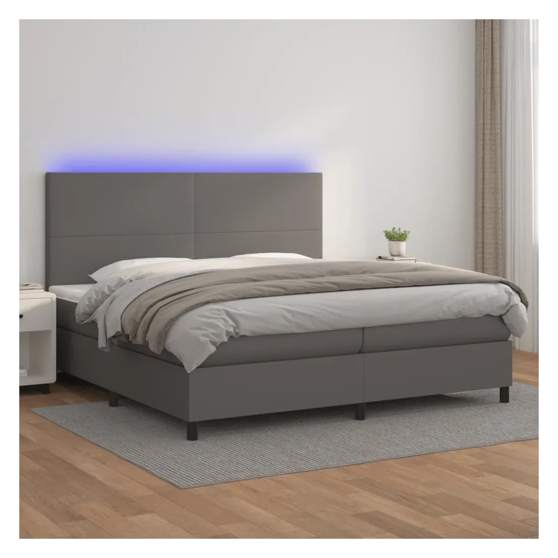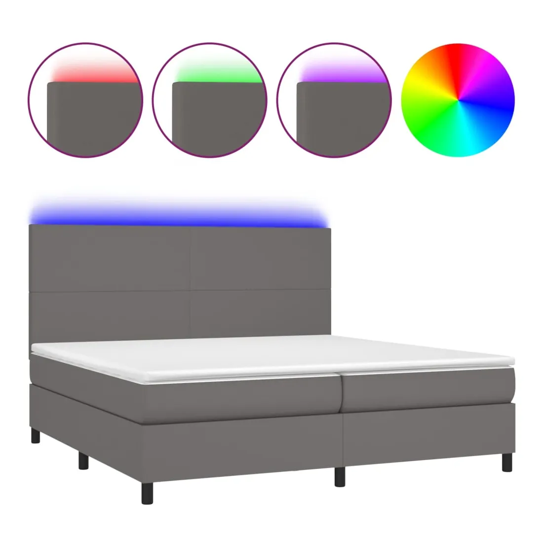 Utilisez ce sommier tapissier avec matelas et LED pour profiter d'un sommeil réparateur ! C'est le point central de votre chambre à coucher. Similicuir durable : le similicuir de qualité supérieure est un matériau très durable. Il est résistant aux taches, ce qui le rend facile à nettoyer avec un chiffon humide. La surface lisse donne également un aspect luxueux et la beauté du cuir véritable.Tête de lit pratique : la tête de lit est réglable en hauteur selon vos préférences. La tête de lit vous offre un excellent soutien du dos lorsque vous êtes assis dans votre lit pour lire ou regarder la télévision.Bande LED colorée : apportez de l'éclairage dans l'obscurité avec des lumières LED colorées !Matelas à ressorts ensachés : le ressort ensaché individuel intégré est connu pour sa très haute qualité tout en assurant un haut niveau de durabilité et d'adaptabilité. Il peut absorber efficacement le bruit et les chocs causés par les sauts et les rotations.Protège-matelas doux pour la peau : le protège-matelas est recouvert d'un tissu résistant et doux pour la peau, ce qui le rend souple et confortable. Remarque :Pour des raisons d'hygiène, le matelas ne peut pas être retourné si l'emballage est retiré ou ouvert.Seule la partie avec un symbole de ciseaux peut être coupée et seule la partie avec l'USB continuera à fonctionner comme avant.Chaque produit est livré avec un manuel de montage dans la boîte pour un montage facile.Ce produit est doté d'un connecteur USB, mais la source d'alimentation certifiée de USB 5V n'est pas incluse.