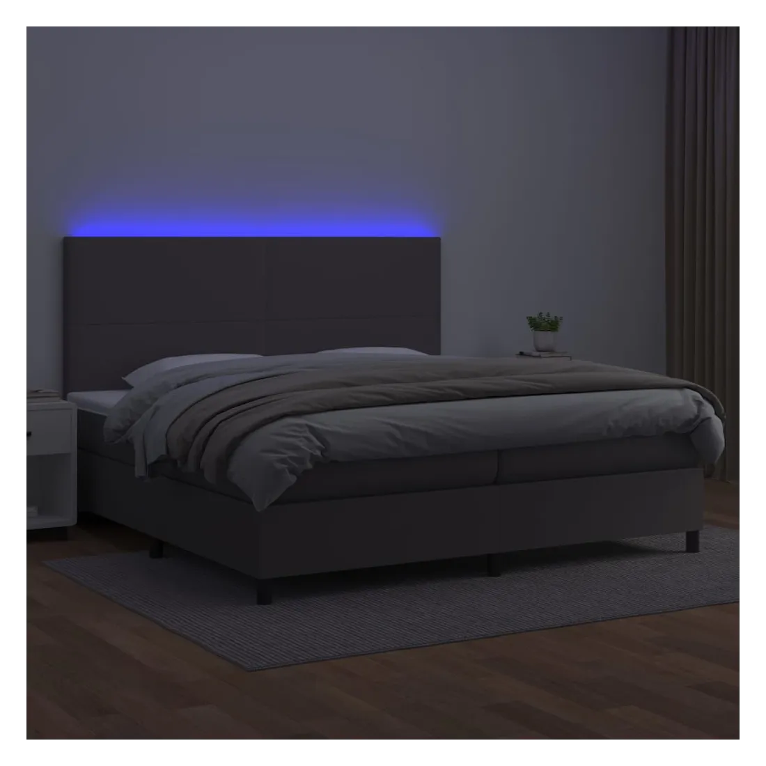 Utilisez ce sommier tapissier avec matelas et LED pour profiter d'un sommeil réparateur ! C'est le point central de votre chambre à coucher. Similicuir durable : le similicuir de qualité supérieure est un matériau très durable. Il est résistant aux taches, ce qui le rend facile à nettoyer avec un chiffon humide. La surface lisse donne également un aspect luxueux et la beauté du cuir véritable. Tête de lit pratique : la tête de lit est réglable en hauteur selon vos préférences. La tête de lit vous offre un excellent soutien du dos lorsque vous êtes assis dans votre lit pour lire ou regarder la télévision. Bande LED colorée : apportez de l'éclairage dans l'obscurité avec des lumières LED colorées ! Matelas à ressorts ensachés : le ressort ensaché individuel intégré est connu pour sa très