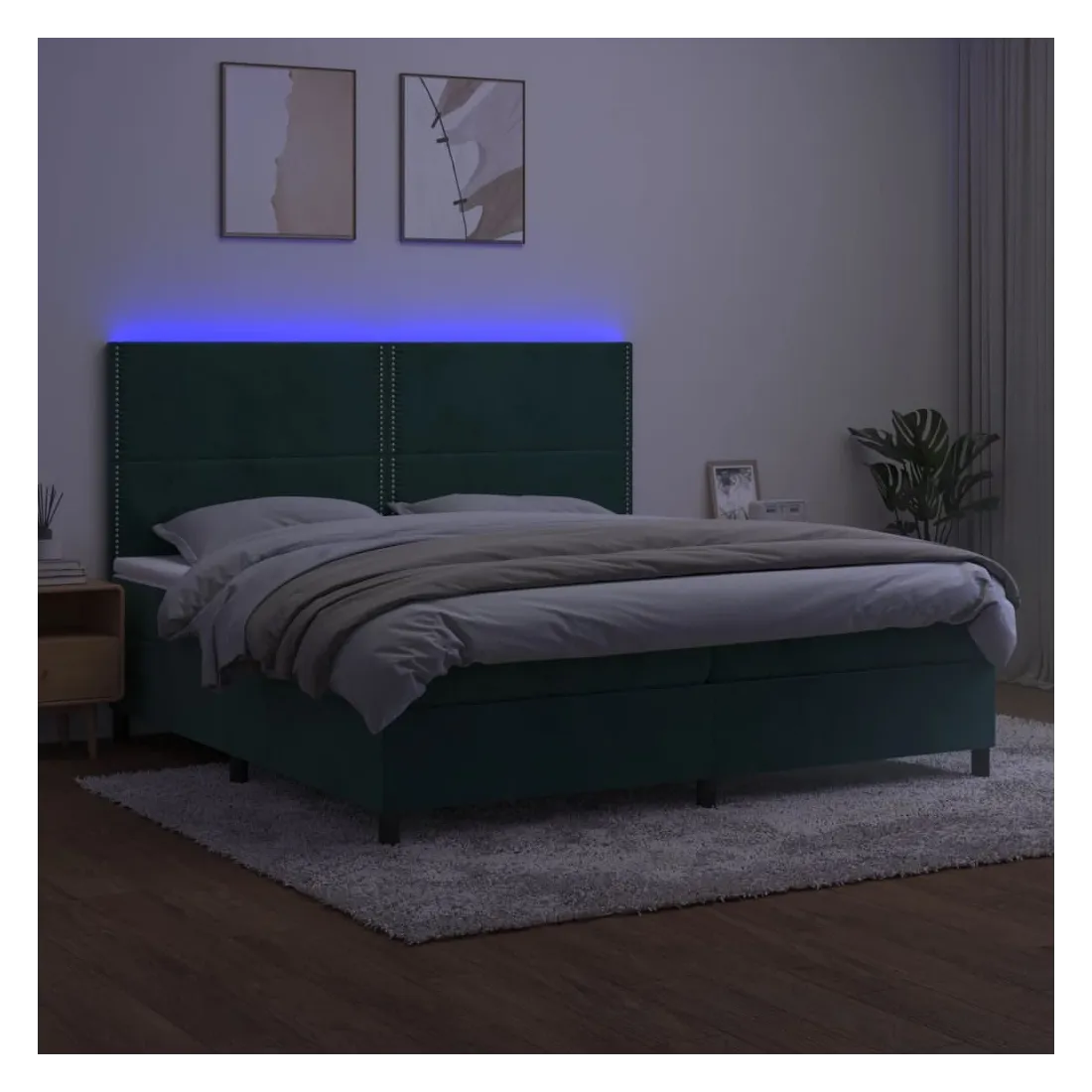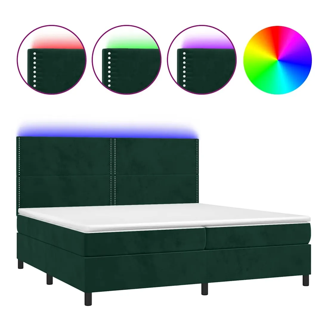 Utilisez ce sommier tapissier avec matelas et LED pour profiter d'un sommeil réparateur ! C'est le point central de votre chambre à coucher. Velours doux : le velours est un tissu doux et luxueux qui se reconnaît à son tas dense de fibres uniformément coupées qui ont une touche lisse. Le tissu en velours présente un toucher doux distinctif, ce qui le rend confortable au toucher.Tête de lit pratique : la tête de lit est réglable en hauteur selon vos préférences. La tête de lit vous offre un excellent soutien du dos lorsque vous êtes assis dans votre lit pour lire ou regarder la télévision.Bande LED colorée : apportez de l'éclairage dans l'obscurité avec des lumières LED colorées !Matelas à ressorts ensachés : le ressort ensaché individuel intégré est connu pour sa très haute qualité tout en assurant un haut niveau de durabilité et d'adaptabilité. Il peut absorber efficacement le bruit et les chocs causés par les sauts et les rotations.Protège-matelas doux pour la peau : le protège-matelas est recouvert d'un tissu résistant et doux pour la peau, ce qui le rend souple et confortable. Remarque :Pour des raisons d'hygiène, le matelas ne peut pas être retourné si l'emballage est retiré ou ouvert.Seule la partie avec un symbole de ciseaux peut être coupée et seule la partie avec l'USB continuera à fonctionner comme avant.Chaque produit est livré avec un manuel de montage dans la boîte pour un montage facile.Ce produit est doté d'un connecteur USB, mais la source d'alimentation certifiée de USB 5V n'est pas incluse.