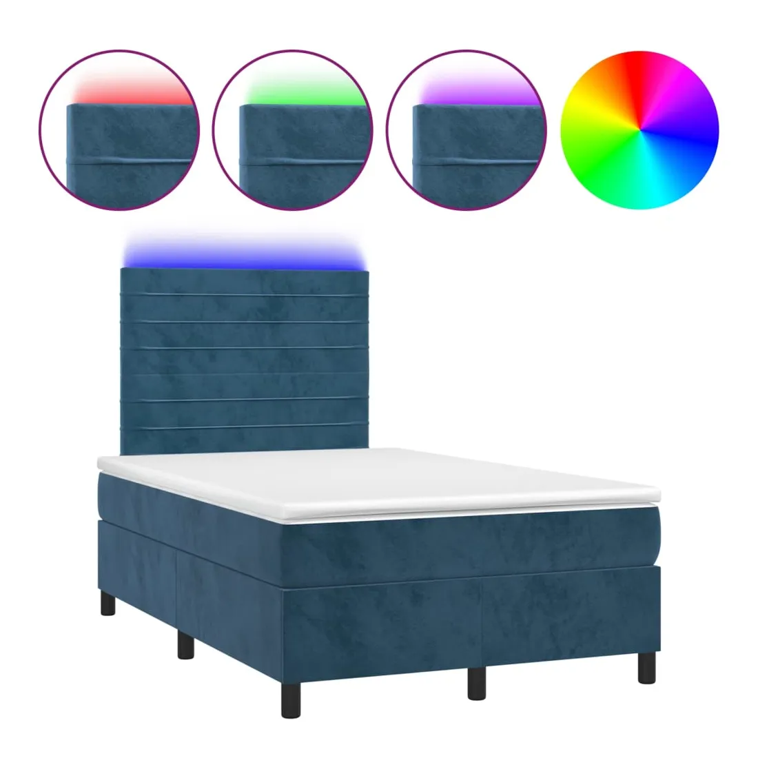 Utilisez ce sommier tapissier avec matelas et LED pour profiter d'un sommeil réparateur ! C'est le point central de votre chambre à coucher. Velours doux : le velours est un tissu doux et luxueux qui se reconnaît à son tas dense de fibres uniformément coupées qui ont une touche lisse. Le tissu en velours présente un toucher doux distinctif, ce qui le rend confortable au toucher.Tête de lit pratique : la tête de lit est réglable en hauteur selon vos préférences. La tête de lit vous offre un excellent soutien du dos lorsque vous êtes assis dans votre lit pour lire ou regarder la télévision.Bande LED colorée : apportez de l'éclairage dans l'obscurité avec des lumières LED colorées !Matelas à ressorts ensachés : le ressort ensaché individuel intégré est connu pour sa très haute qualité tout en assurant un haut niveau de durabilité et d'adaptabilité. Il peut absorber efficacement le bruit et les chocs causés par les sauts et les rotations.Protège-matelas doux pour la peau : le protège-matelas est recouvert d'un tissu résistant et doux pour la peau, ce qui le rend souple et confortable. Remarque :Pour des raisons d'hygiène, le matelas ne peut pas être retourné si l'emballage est retiré ou ouvert.Seule la partie avec un symbole de ciseaux peut être coupée et seule la partie avec l'USB continuera à fonctionner comme avant.Chaque produit est livré avec un manuel de montage dans la boîte pour un montage facile.Ce produit est doté d'un connecteur USB, mais la source d'alimentation certifiée de USB 5V n'est pas incluse.