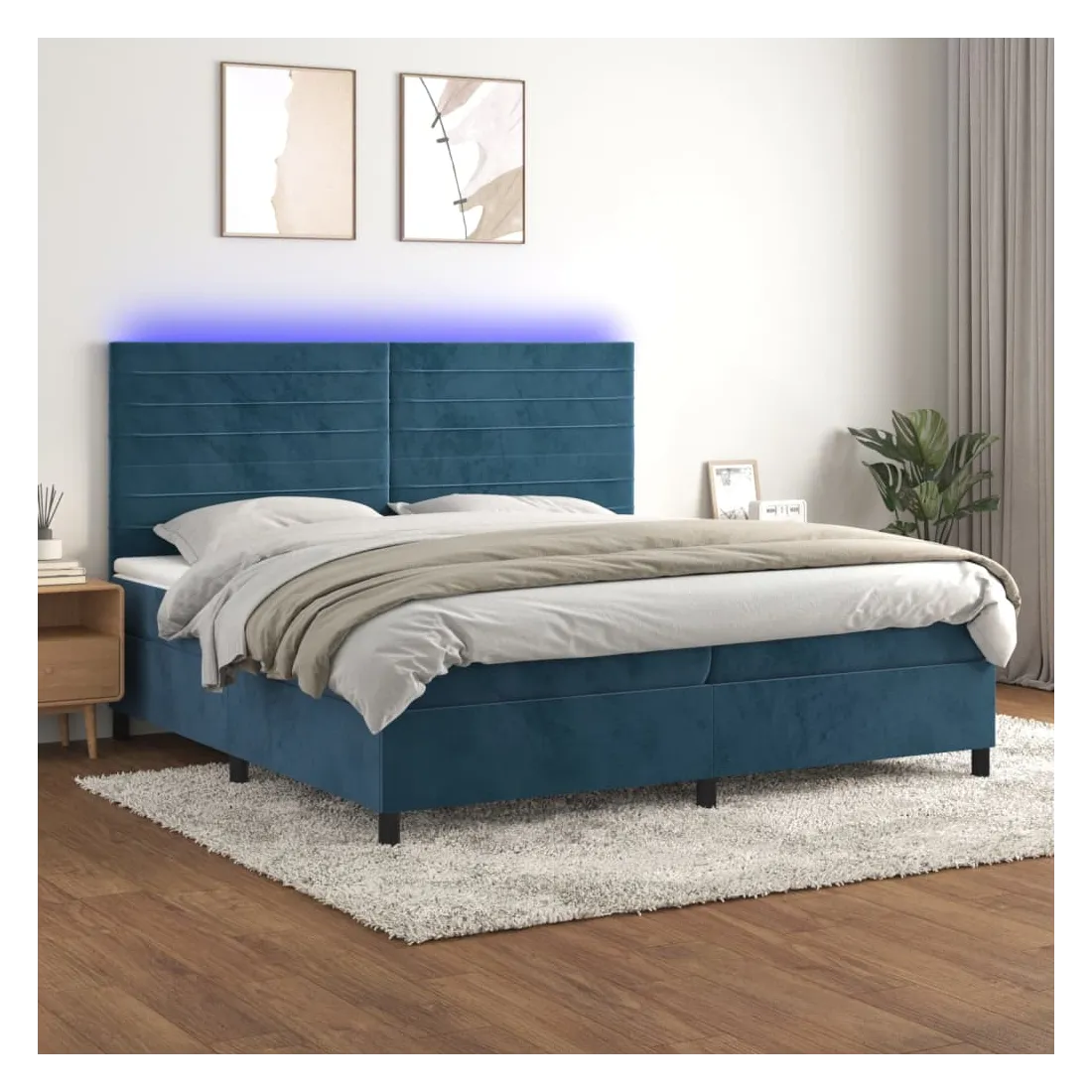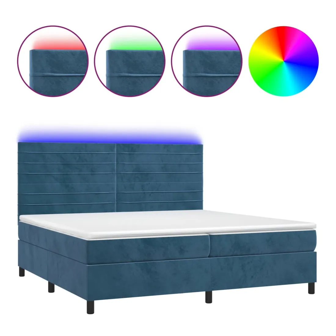 Utilisez ce sommier tapissier avec matelas et LED pour profiter d'un sommeil réparateur ! C'est le point central de votre chambre à coucher. Velours doux : le velours est un tissu doux et luxueux qui se reconnaît à son tas dense de fibres uniformément coupées qui ont une touche lisse. Le tissu en velours présente un toucher doux distinctif, ce qui le rend confortable au toucher.Tête de lit pratique : la tête de lit est réglable en hauteur selon vos préférences. La tête de lit vous offre un excellent soutien du dos lorsque vous êtes assis dans votre lit pour lire ou regarder la télévision.Bande LED colorée : apportez de l'éclairage dans l'obscurité avec des lumières LED colorées !Matelas à ressorts ensachés : le ressort ensaché individuel intégré est connu pour sa très haute qualité tout en assurant un haut niveau de durabilité et d'adaptabilité. Il peut absorber efficacement le bruit et les chocs causés par les sauts et les rotations.Protège-matelas doux pour la peau : le protège-matelas est recouvert d'un tissu résistant et doux pour la peau, ce qui le rend souple et confortable. Remarque :Pour des raisons d'hygiène, le matelas ne peut pas être retourné si l'emballage est retiré ou ouvert.Seule la partie avec un symbole de ciseaux peut être coupée et seule la partie avec l'USB continuera à fonctionner comme avant.Chaque produit est livré avec un manuel de montage dans la boîte pour un montage facile.Ce produit est doté d'un connecteur USB, mais la source d'alimentation certifiée de USB 5V n'est pas incluse.