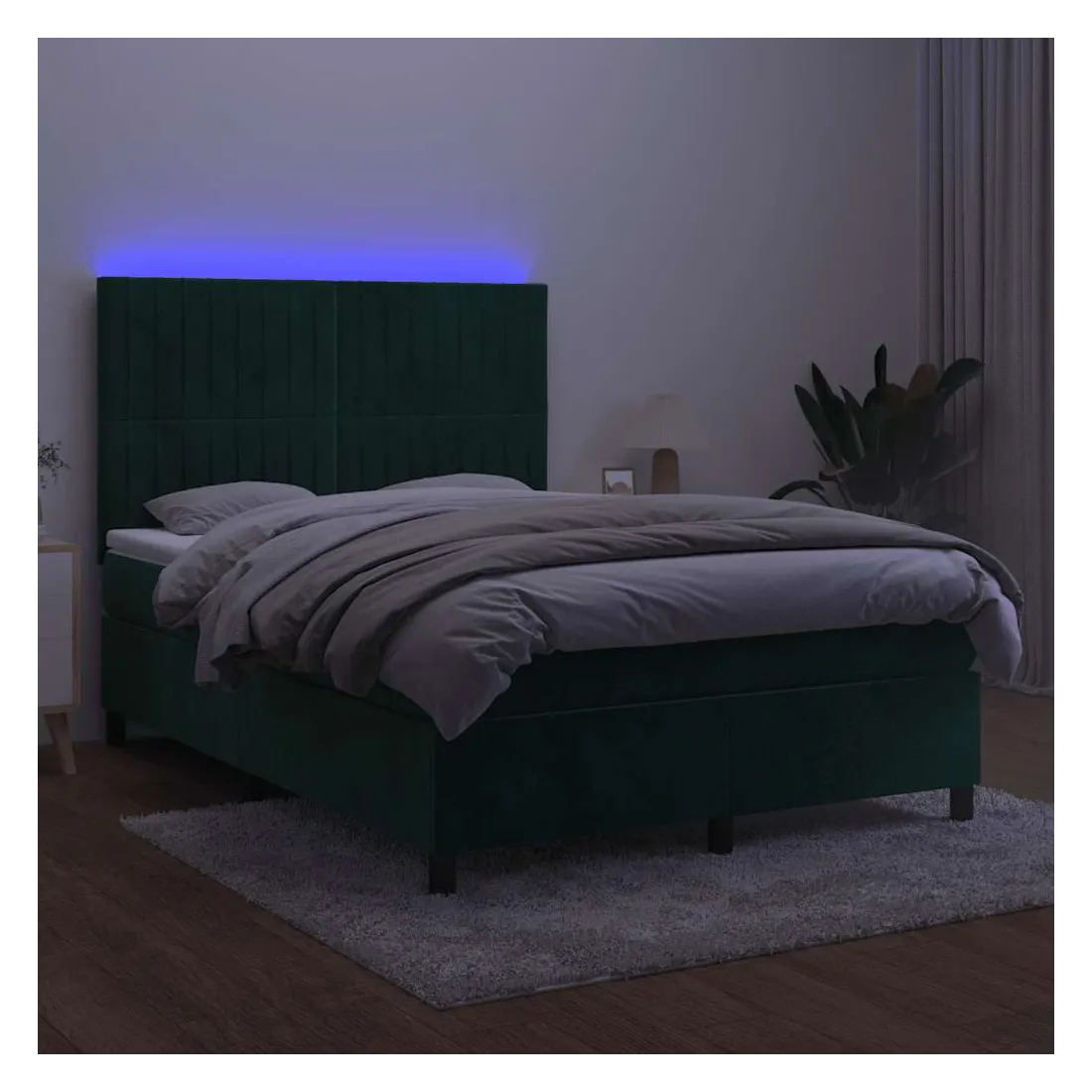 Utilisez ce sommier tapissier avec matelas et LED pour profiter d'un sommeil réparateur ! C'est le point central de votre chambre à coucher. Velours doux : le velours est un tissu doux et luxueux qui se reconnaît à son tas dense de fibres uniformément coupées qui ont une touche lisse. Le tissu en velours présente un toucher doux distinctif, ce qui le rend confortable au toucher.Tête de lit pratique : la tête de lit est réglable en hauteur selon vos préférences. La tête de lit vous offre un excellent soutien du dos lorsque vous êtes assis dans votre lit pour lire ou regarder la télévision.Bande LED colorée : apportez de l'éclairage dans l'obscurité avec des lumières LED colorées !Matelas à ressorts ensachés : le ressort ensaché individuel intégré est connu pour sa très haute qualité tout en assurant un haut niveau de durabilité et d'adaptabilité. Il peut absorber efficacement le bruit et les chocs causés par les sauts et les rotations.Protège-matelas doux pour la peau : le protège-matelas est recouvert d'un tissu résistant et doux pour la peau, ce qui le rend souple et confortable. Remarque :Pour des raisons d'hygiène, le matelas ne peut pas être retourné si l'emballage est retiré ou ouvert.Seule la partie avec un symbole de ciseaux peut être coupée et seule la partie avec l'USB continuera à fonctionner comme avant.Chaque produit est livré avec un manuel de montage dans la boîte pour un montage facile.Ce produit est doté d'un connecteur USB, mais la source d'alimentation certifiée de USB 5V n'est pas incluse.