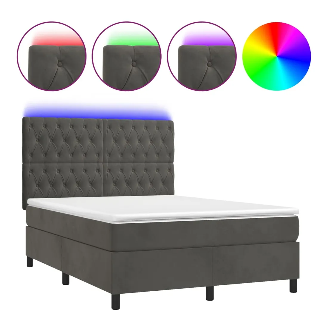 Utilisez ce sommier tapissier avec matelas et LED pour profiter d'un sommeil réparateur ! C'est le point central de votre chambre à coucher. Velours doux : le velours est un tissu doux et luxueux qui se reconnaît à son tas dense de fibres uniformément coupées qui ont une touche lisse. Le tissu en velours présente un toucher doux distinctif, ce qui le rend confortable au toucher.Tête de lit pratique : la tête de lit est réglable en hauteur selon vos préférences. La tête de lit vous offre un excellent soutien du dos lorsque vous êtes assis dans votre lit pour lire ou regarder la télévision.Bande LED colorée : apportez de l'éclairage dans l'obscurité avec des lumières LED colorées !Matelas à ressorts ensachés : le ressort ensaché individuel intégré est connu pour sa très haute qualité tout en assurant un haut niveau de durabilité et d'adaptabilité. Il peut absorber efficacement le bruit et les chocs causés par les sauts et les rotations.Protège-matelas doux pour la peau : le protège-matelas est recouvert d'un tissu résistant et doux pour la peau, ce qui le rend souple et confortable. Remarque :Pour des raisons d'hygiène, le matelas ne peut pas être retourné si l'emballage est retiré ou ouvert.Seule la partie avec un symbole de ciseaux peut être coupée et seule la partie avec l'USB continuera à fonctionner comme avant.Chaque produit est livré avec un manuel de montage dans la boîte pour un montage facile.Ce produit est doté d'un connecteur USB, mais la source d'alimentation certifiée de USB 5V n'est pas incluse.