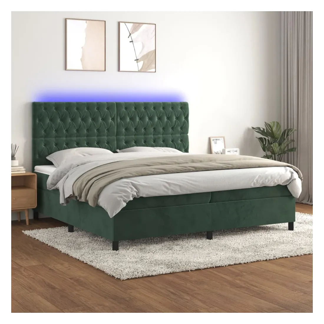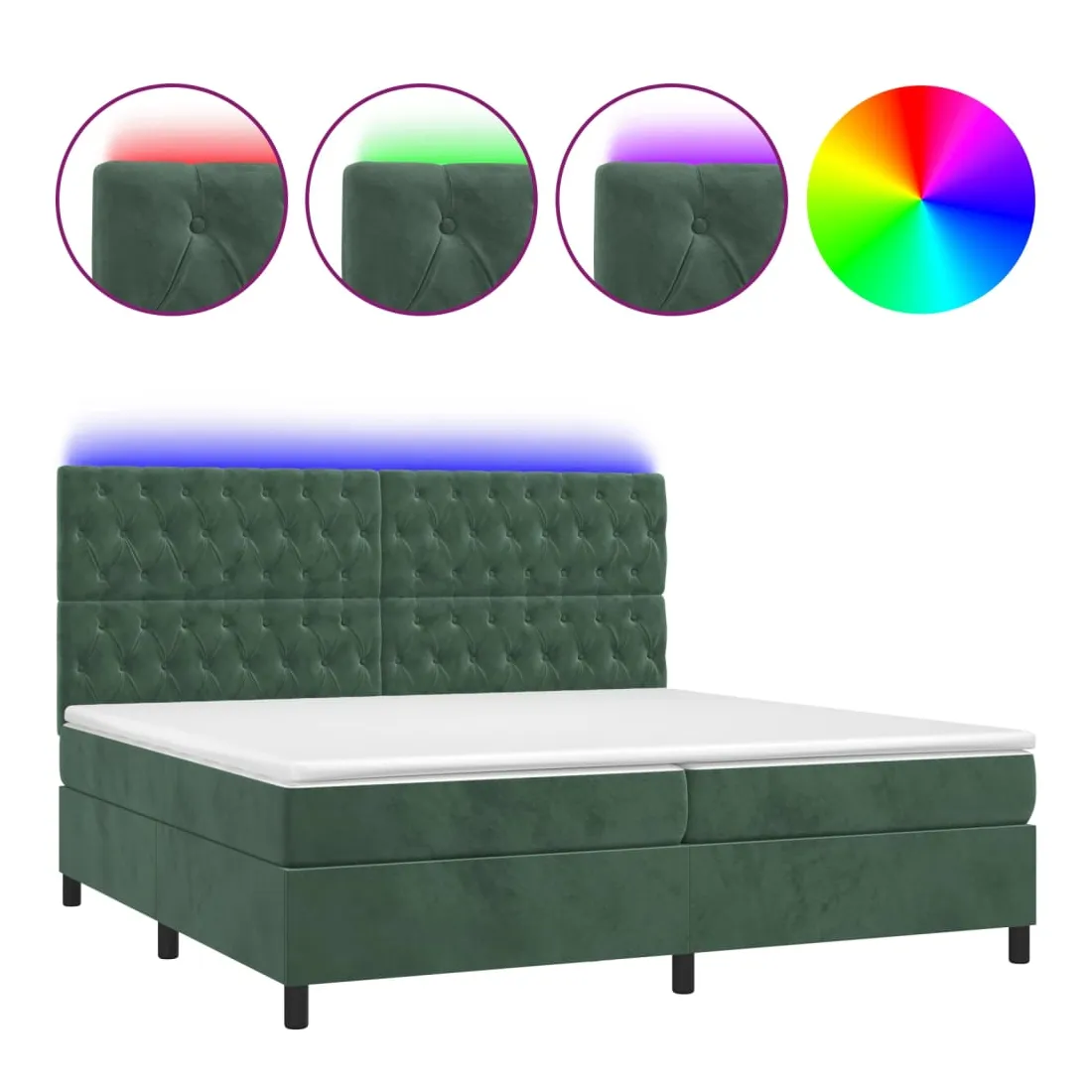 Sommier à lattes de lit matelas et LED Vert foncé 200x200 cm