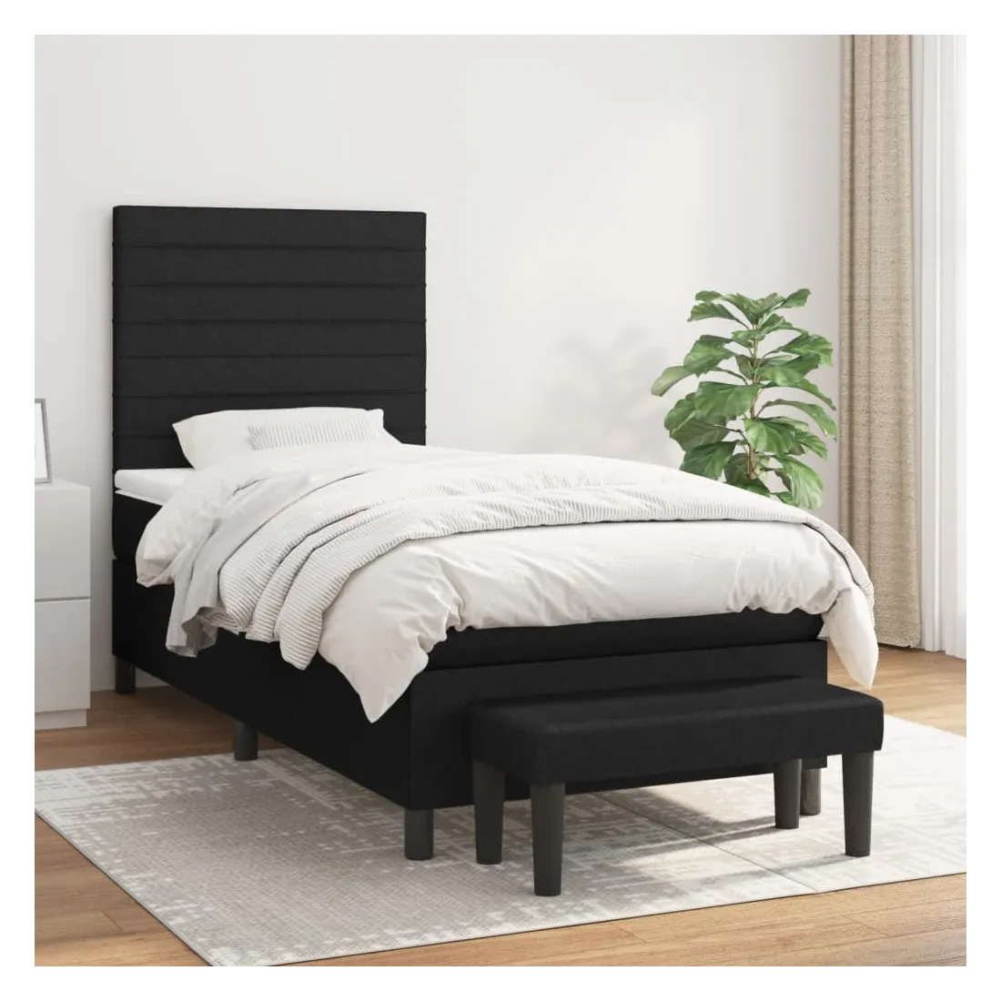 Utilisez ce lit à sommier pour profiter d'une nuit de sommeil réparatrice ! Il vous offre une relaxation maximale et un sommeil agréable. Tissu durable : le tissu présente un aspect simple et épuré, et il est respirant et durable.Tête de lit pratique : la tête de lit est réglable en hauteur selon vos préférences. La tête de lit vous offre un excellent soutien du dos lorsque vous êtes assis dans votre lit pour lire ou regarder la télévision.Matelas à ressorts ensachés : le ressort ensaché individuel intégré est connu pour sa très haute qualité tout en assurant un haut niveau de durabilité et d'adaptabilité. Il peut absorber efficacement le bruit et les chocs causés par les sauts et les rotations.Support moyen-dur : ce matelas de lit offre une stabilité accrue et juste le niveau de fermeté sans sacrifier le confort. Il est donc idéal pour les personnes qui dorment sur le dos ou sur le ventre.Protège-matelas doux pour la peau : le protège-matelas est recouvert d'un tissu résistant et doux pour la peau, ce qui le rend souple et confortable.Banc multifonctionnel : ce banc peut servir de siège supplémentaire dans votre maison. Il peut également être utilisé comme banc de bout de lit. Remarque :Pour des raisons d'hygiène, le matelas ne peut pas être retourné si l'emballage est retiré ou ouvert.Chaque produit est livré avec un manuel de montage dans la boîte pour un montage facile.