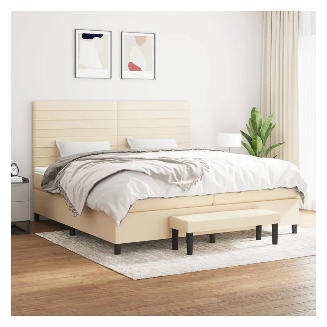 Sommier à lattes de lit avec matelas Crème 200x200 cm Tissu