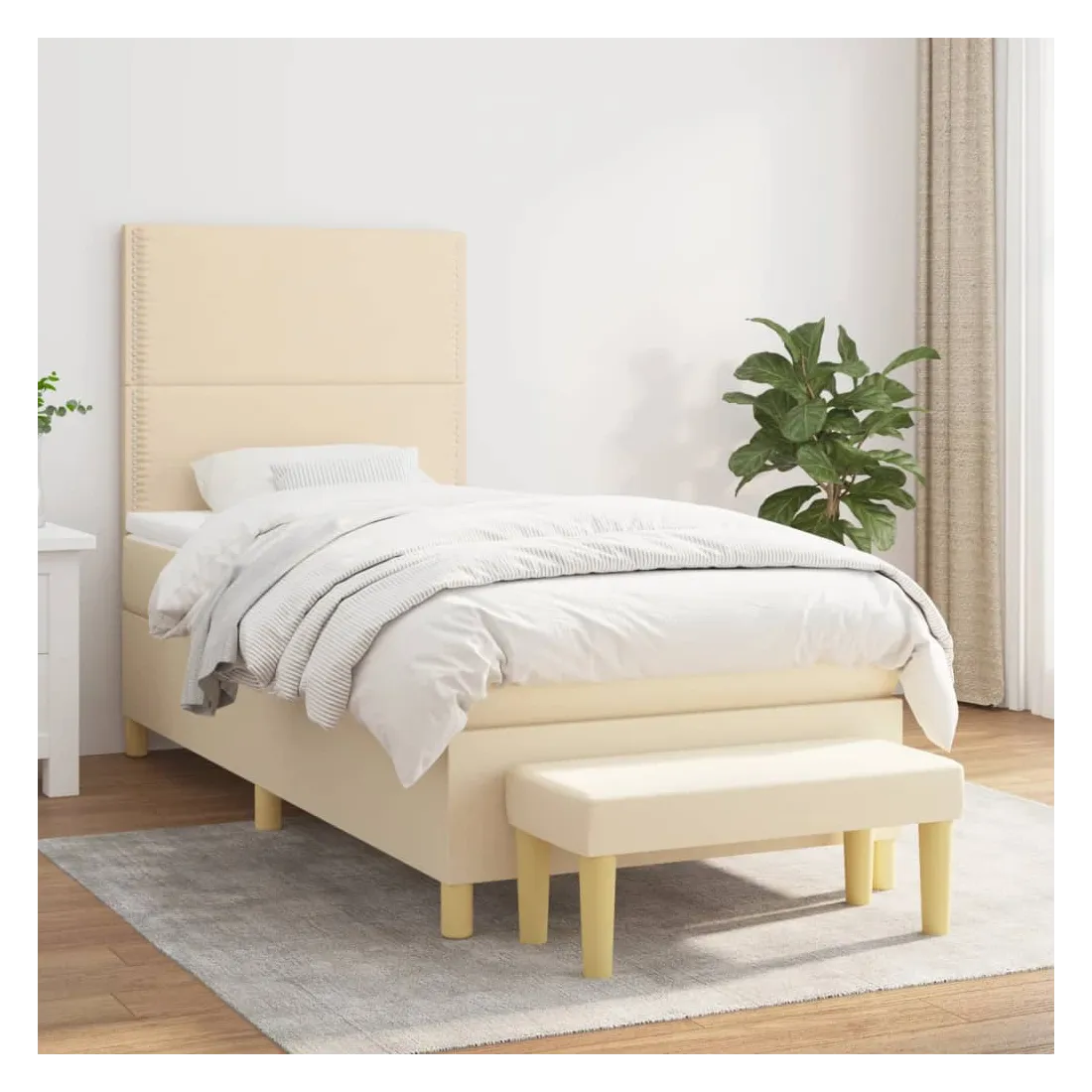Sommier à lattes de lit et matelas Crème 90x190 cm Tissu