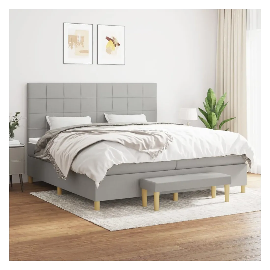 Utilisez ce lit à sommier pour profiter d'une nuit de sommeil réparatrice ! Il vous offre une relaxation maximale et un sommeil agréable. Tissu durable : le tissu présente un aspect simple et épuré, et il est respirant et durable.Tête de lit pratique : la tête de lit est réglable en hauteur selon vos préférences. La tête de lit vous offre un excellent soutien du dos lorsque vous êtes assis dans votre lit pour lire ou regarder la télévision.Matelas à ressorts ensachés : le ressort ensaché individuel intégré est connu pour sa très haute qualité tout en assurant un haut niveau de durabilité et d'adaptabilité. Il peut absorber efficacement le bruit et les chocs causés par les sauts et les rotations.Support moyen-dur : ce matelas de lit offre une stabilité accrue et juste le niveau de fermeté sans sacrifier le confort. Il est donc idéal pour les personnes qui dorment sur le dos ou sur le ventre.Protège-matelas doux pour la peau : le protège-matelas est recouvert d'un tissu résistant et doux pour la peau, ce qui le rend souple et confortable.Banc multifonctionnel : ce banc peut servir de siège supplémentaire dans votre maison. Il peut également être utilisé comme banc de bout de lit. Remarque :Pour des raisons d'hygiène, le matelas ne peut pas être retourné si l'emballage est retiré ou ouvert.Chaque produit est livré avec un manuel de montage dans la boîte pour un montage facile.