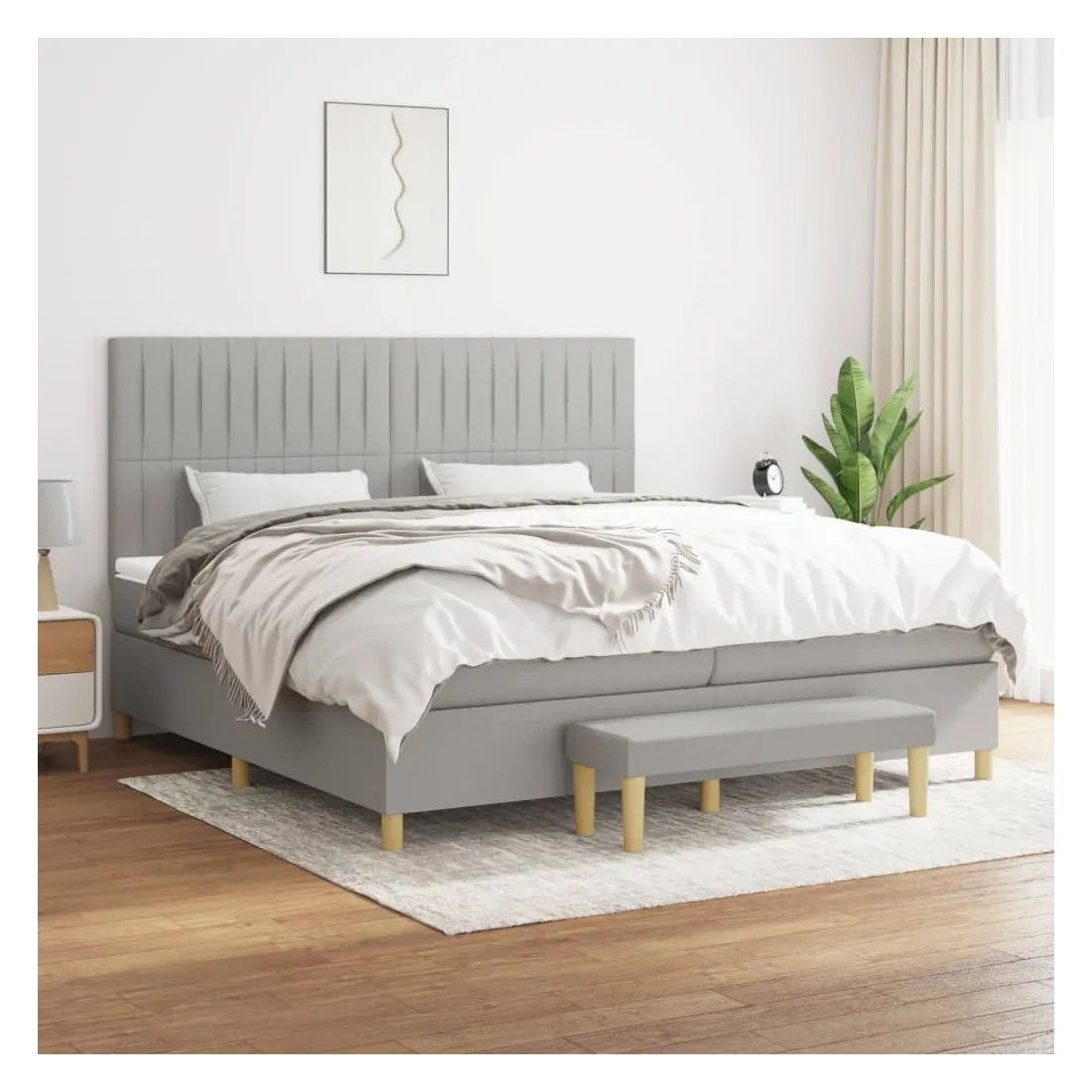 Utilisez ce lit à sommier pour profiter d'une nuit de sommeil réparatrice ! Il vous offre une relaxation maximale et un sommeil agréable. Tissu durable : le tissu présente un aspect simple et épuré, et il est respirant et durable.Tête de lit pratique : la tête de lit est réglable en hauteur selon vos préférences. La tête de lit vous offre un excellent soutien du dos lorsque vous êtes assis dans votre lit pour lire ou regarder la télévision.Matelas à ressorts ensachés : le ressort ensaché individuel intégré est connu pour sa très haute qualité tout en assurant un haut niveau de durabilité et d'adaptabilité. Il peut absorber efficacement le bruit et les chocs causés par les sauts et les rotations.Support moyen-dur : ce matelas de lit offre une stabilité accrue et juste le niveau de fermeté sans sacrifier le confort. Il est donc idéal pour les personnes qui dorment sur le dos ou sur le ventre.Protège-matelas doux pour la peau : le protège-matelas est recouvert d'un tissu résistant et doux pour la peau, ce qui le rend souple et confortable.Banc multifonctionnel : ce banc peut servir de siège supplémentaire dans votre maison. Il peut également être utilisé comme banc de bout de lit. Remarque :Pour des raisons d'hygiène, le matelas ne peut pas être retourné si l'emballage est retiré ou ouvert.Chaque produit est livré avec un manuel de montage dans la boîte pour un montage facile.