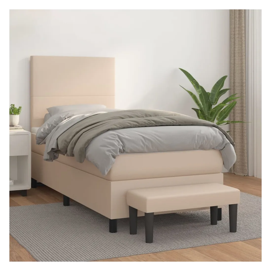 Utilisez ce lit à sommier pour profiter d'une nuit de sommeil réparatrice ! Il vous offre une relaxation maximale et un sommeil agréable. Similicuir durable : le similicuir de qualité supérieure est un matériau très durable. Il est résistant aux taches, ce qui le rend facile à nettoyer avec un chiffon humide. La surface lisse donne également un aspect luxueux et la beauté du cuir véritable.Tête de lit pratique : la tête de lit est réglable en hauteur selon vos préférences. La tête de lit vous offre un excellent soutien du dos lorsque vous êtes assis dans votre lit pour lire ou regarder la télévision.Matelas à ressorts ensachés : le ressort ensaché individuel intégré est connu pour sa très haute qualité tout en assurant un haut niveau de durabilité et d'adaptabilité. Il peut absorber efficacement le bruit et les chocs causés par les sauts et les rotations.Support moyen-dur : ce matelas de lit offre une stabilité accrue et juste le niveau de fermeté sans sacrifier le confort. Il est donc idéal pour les personnes qui dorment sur le dos ou sur le ventre.Protège-matelas doux pour la peau : le protège-matelas est recouvert d'un tissu résistant et doux pour la peau, ce qui le rend souple et confortable.Banc multifonctionnel : ce banc peut servir de siège supplémentaire dans votre maison. Il peut également être utilisé comme banc de bout de lit. Remarque :Pour des raisons d'hygiène, le matelas ne peut pas être retourné si l'emballage est retiré ou ouvert.Chaque produit est livré avec un manuel de montage dans la boîte pour un montage facile.