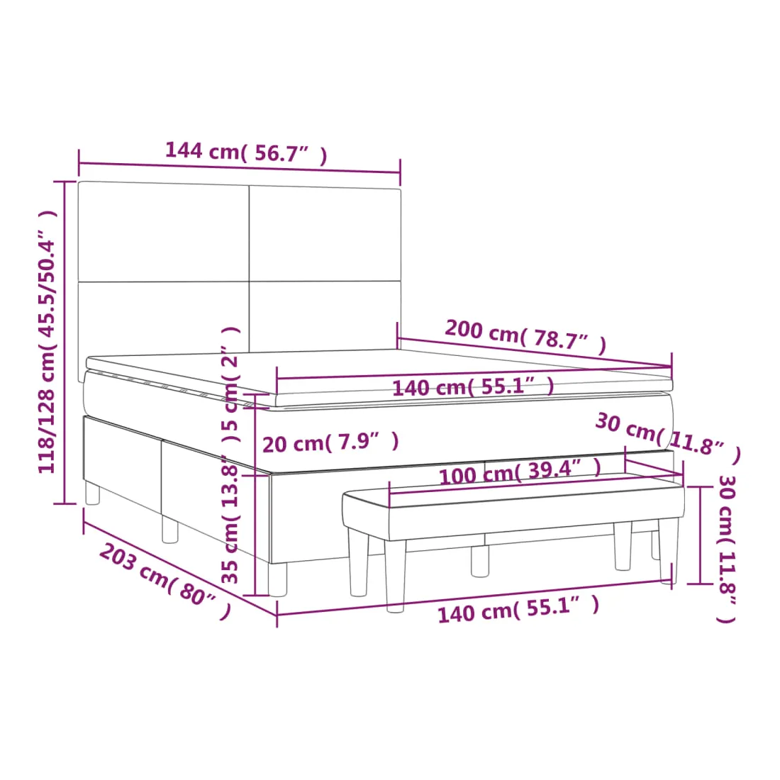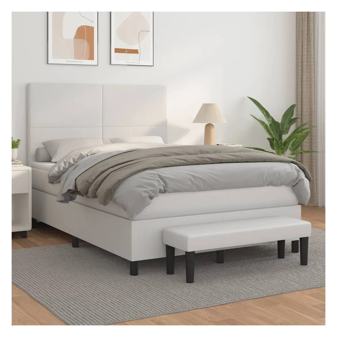 vidaXLUtilisez ce lit à sommier pour profiter d'une nuit de sommeil réparatrice ! Il vous offre une relaxation maximale et un sommeil agréable. Similicuir durable : le similicuir de qualité supérieure est un matériau très durable. Il est résistant aux taches, ce qui le rend facile à nettoyer avec un chiffon humide. La surface lisse donne également un aspect luxueux et la beauté du cuir véritable.Tête de lit pratique : la tête de lit est réglable en hauteur selon vos préférences. La tête de lit vous offre un excellent soutien du dos lorsque vous êtes assis dans votre lit pour lire ou regarder la télévision.Matelas à ressorts ensachés : le ressort ensaché individuel intégré est connu pour sa très haute qualité tout en assurant un haut niveau de durabilité et d'adaptabilité. Il peut absorber efficacement le bruit et les chocs causés par les sauts et les rotations.Support moyen-dur : ce matelas de lit offre une stabilité accrue et juste le niveau de fermeté sans sacrifier le confort. Il est donc idéal pour les personnes qui dorment sur le dos ou sur le ventre.Protège-matelas doux pour la peau : le protège-matelas est recouvert d'un tissu résistant et doux pour la peau, ce qui le rend souple et confortable.Banc multifonctionnel : ce banc peut servir de siège supplémentaire dans votre maison. Il peut également être utilisé comme banc de bout de lit. Remarque :Pour des raisons d'hygiène, le matelas ne peut pas être retourné si l'emballage est retiré ou ouvert.Chaque produit est livré avec un manuel de montage dans la boîte pour un montage facile.