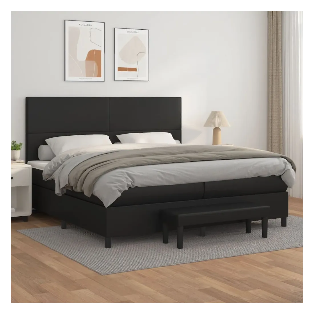 Utilisez ce lit à sommier pour profiter d'une nuit de sommeil réparatrice ! Il vous offre une relaxation maximale et un sommeil agréable. Similicuir durable : le similicuir de qualité supérieure est un matériau très durable. Il est résistant aux taches, ce qui le rend facile à nettoyer avec un chiffon humide. La surface lisse donne également un aspect luxueux et la beauté du cuir véritable.Tête de lit pratique : la tête de lit est réglable en hauteur selon vos préférences. La tête de lit vous offre un excellent soutien du dos lorsque vous êtes assis dans votre lit pour lire ou regarder la télévision.Matelas à ressorts ensachés : le ressort ensaché individuel intégré est connu pour sa très haute qualité tout en assurant un haut niveau de durabilité et d'adaptabilité. Il peut absorber efficacement le bruit et les chocs causés par les sauts et les rotations.Support moyen-dur : ce matelas de lit offre une stabilité accrue et juste le niveau de fermeté sans sacrifier le confort. Il est donc idéal pour les personnes qui dorment sur le dos ou sur le ventre.Protège-matelas doux pour la peau : le protège-matelas est recouvert d'un tissu résistant et doux pour la peau, ce qui le rend souple et confortable.Banc multifonctionnel : ce banc peut servir de siège supplémentaire dans votre maison. Il peut également être utilisé comme banc de bout de lit. Remarque :Pour des raisons d'hygiène, le matelas ne peut pas être retourné si l'emballage est retiré ou ouvert.Chaque produit est livré avec un manuel de montage dans la boîte pour un montage facile.