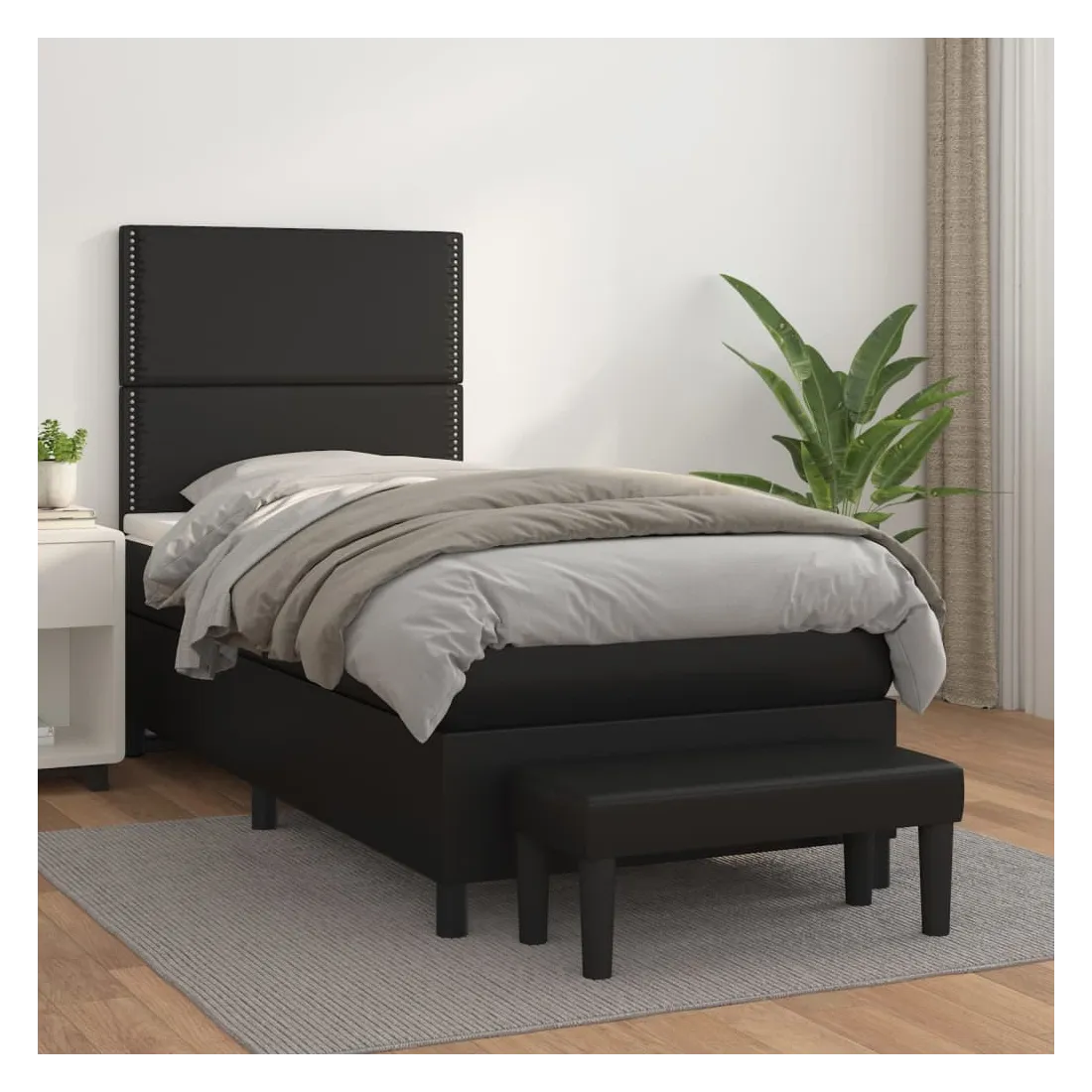 Utilisez ce lit à sommier pour profiter d'une nuit de sommeil réparatrice ! Il vous offre une relaxation maximale et un sommeil agréable. Similicuir durable : le similicuir de qualité supérieure est un matériau très durable. Il est résistant aux taches, ce qui le rend facile à nettoyer avec un chiffon humide. La surface lisse donne également un aspect luxueux et la beauté du cuir véritable.Tête de lit pratique : la tête de lit est réglable en hauteur selon vos préférences. La tête de lit vous offre un excellent soutien du dos lorsque vous êtes assis dans votre lit pour lire ou regarder la télévision.Matelas à ressorts ensachés : le ressort ensaché individuel intégré est connu pour sa très haute qualité tout en assurant un haut niveau de durabilité et d'adaptabilité. Il peut absorber efficacement le bruit et les chocs causés par les sauts et les rotations.Support moyen-dur : ce matelas de lit offre une stabilité accrue et juste le niveau de fermeté sans sacrifier le confort. Il est donc idéal pour les personnes qui dorment sur le dos ou sur le ventre.Protège-matelas doux pour la peau : le protège-matelas est recouvert d'un tissu résistant et doux pour la peau, ce qui le rend souple et confortable.Banc multifonctionnel : ce banc peut servir de siège supplémentaire dans votre maison. Il peut également être utilisé comme banc de bout de lit. Remarque :Pour des raisons d'hygiène, le matelas ne peut pas être retourné si l'emballage est retiré ou ouvert.Chaque produit est livré avec un manuel de montage dans la boîte pour un montage facile.