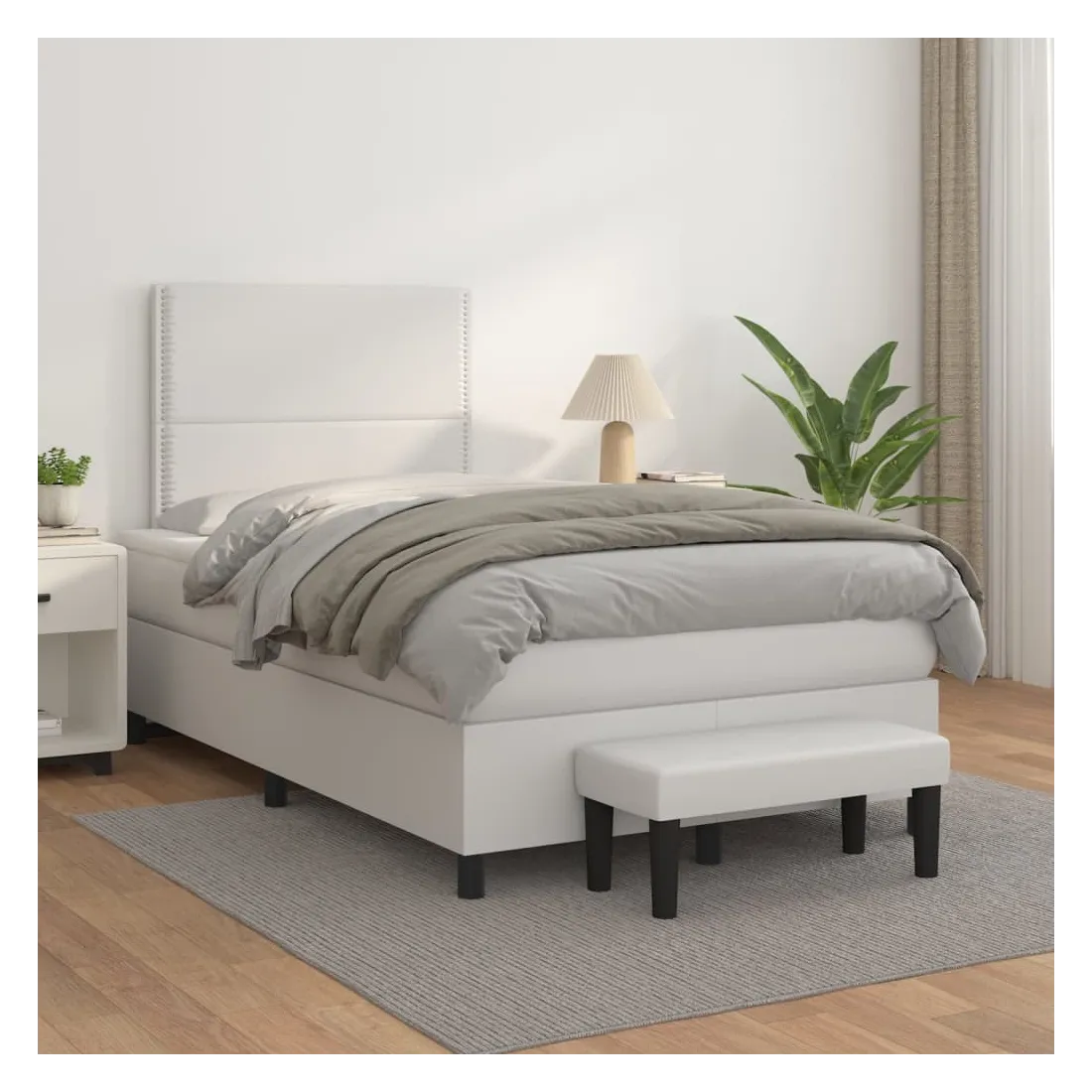 Utilisez ce lit à sommier pour profiter d'une nuit de sommeil réparatrice ! Il vous offre une relaxation maximale et un sommeil agréable. Similicuir durable : le similicuir de qualité supérieure est un matériau très durable. Il est résistant aux taches, ce qui le rend facile à nettoyer avec un chiffon humide. La surface lisse donne également un aspect luxueux et la beauté du cuir véritable.Tête de lit pratique : la tête de lit est réglable en hauteur selon vos préférences. La tête de lit vous offre un excellent soutien du dos lorsque vous êtes assis dans votre lit pour lire ou regarder la télévision.Matelas à ressorts ensachés : le ressort ensaché individuel intégré est connu pour sa très haute qualité tout en assurant un haut niveau de durabilité et d'adaptabilité. Il peut absorber efficacement le bruit et les chocs causés par les sauts et les rotations.Support moyen-dur : ce matelas de lit offre une stabilité accrue et juste le niveau de fermeté sans sacrifier le confort. Il est donc idéal pour les personnes qui dorment sur le dos ou sur le ventre.Protège-matelas doux pour la peau : le protège-matelas est recouvert d'un tissu résistant et doux pour la peau, ce qui le rend souple et confortable.Banc multifonctionnel : ce banc peut servir de siège supplémentaire dans votre maison. Il peut également être utilisé comme banc de bout de lit. Remarque :Pour des raisons d'hygiène, le matelas ne peut pas être retourné si l'emballage est retiré ou ouvert.Chaque produit est livré avec un manuel de montage dans la boîte pour un montage facile.