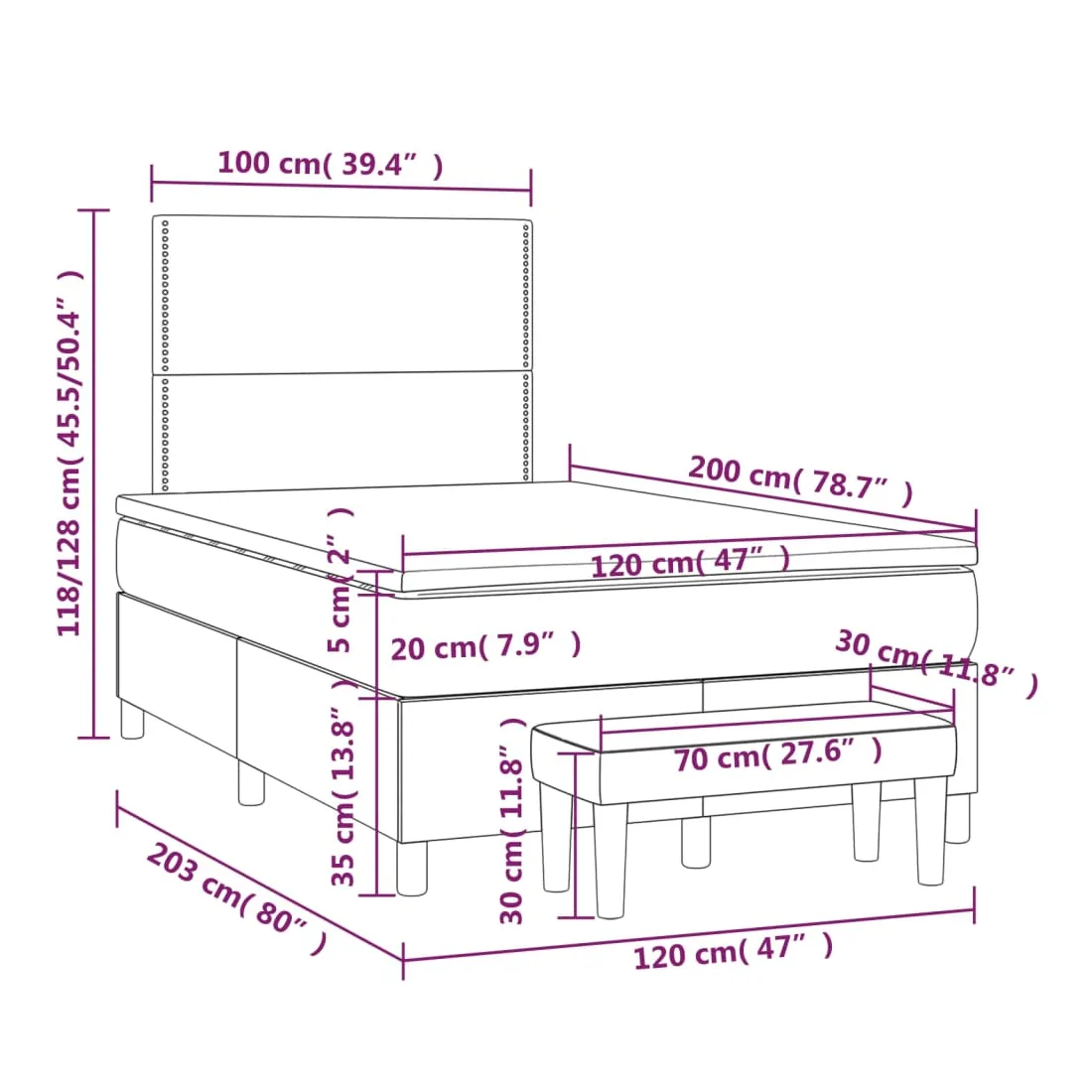 • Dimensions : 120 x 200 x 20 cm (l x L x H)