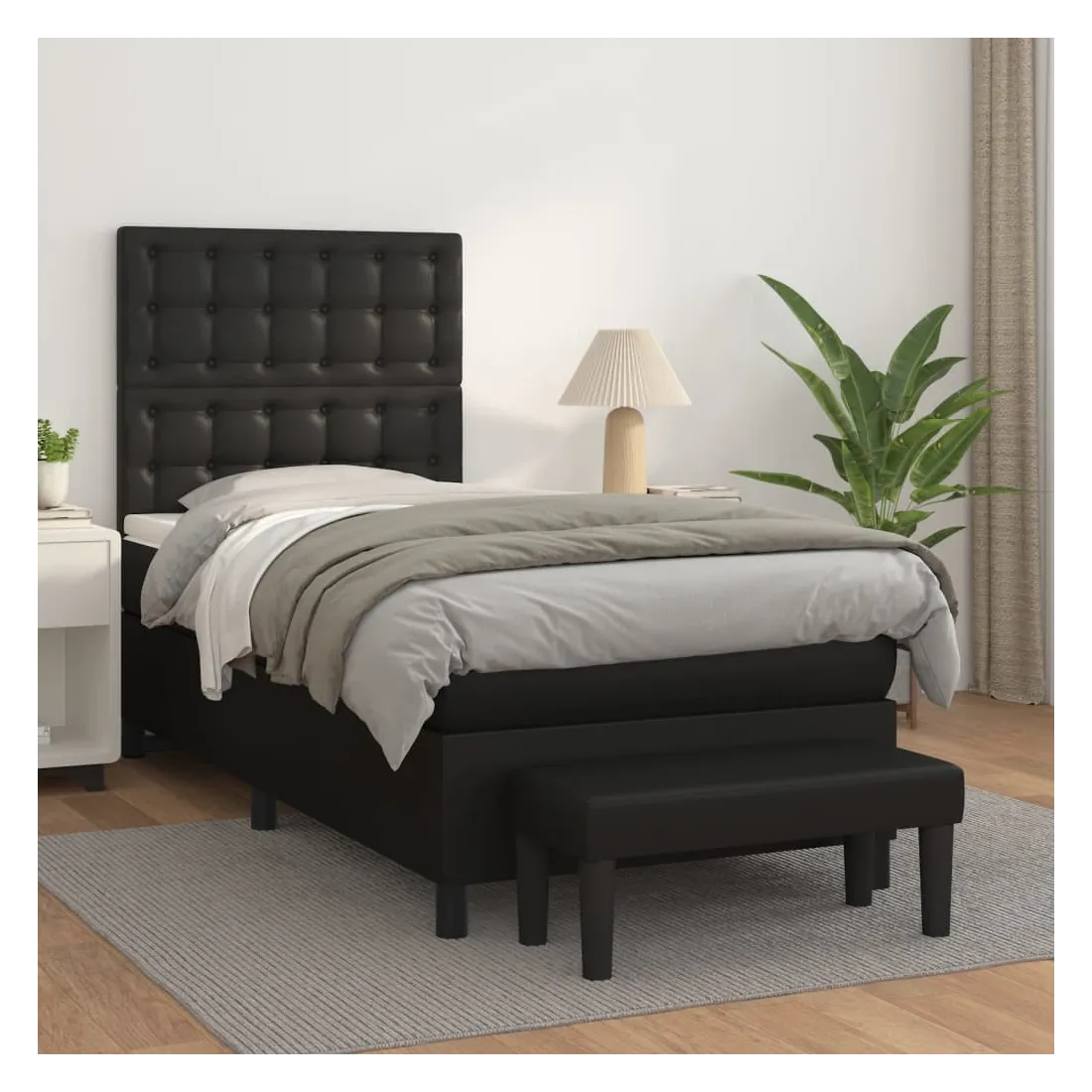 Sommier à lattes de lit avec matelas Noir 90x200 cm Similicuir