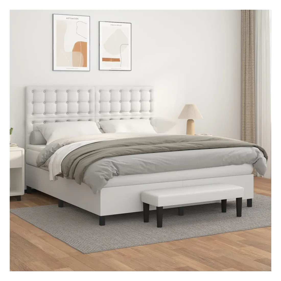 Sommier à lattes de lit avec matelas Blanc 180x200cm Similicuir