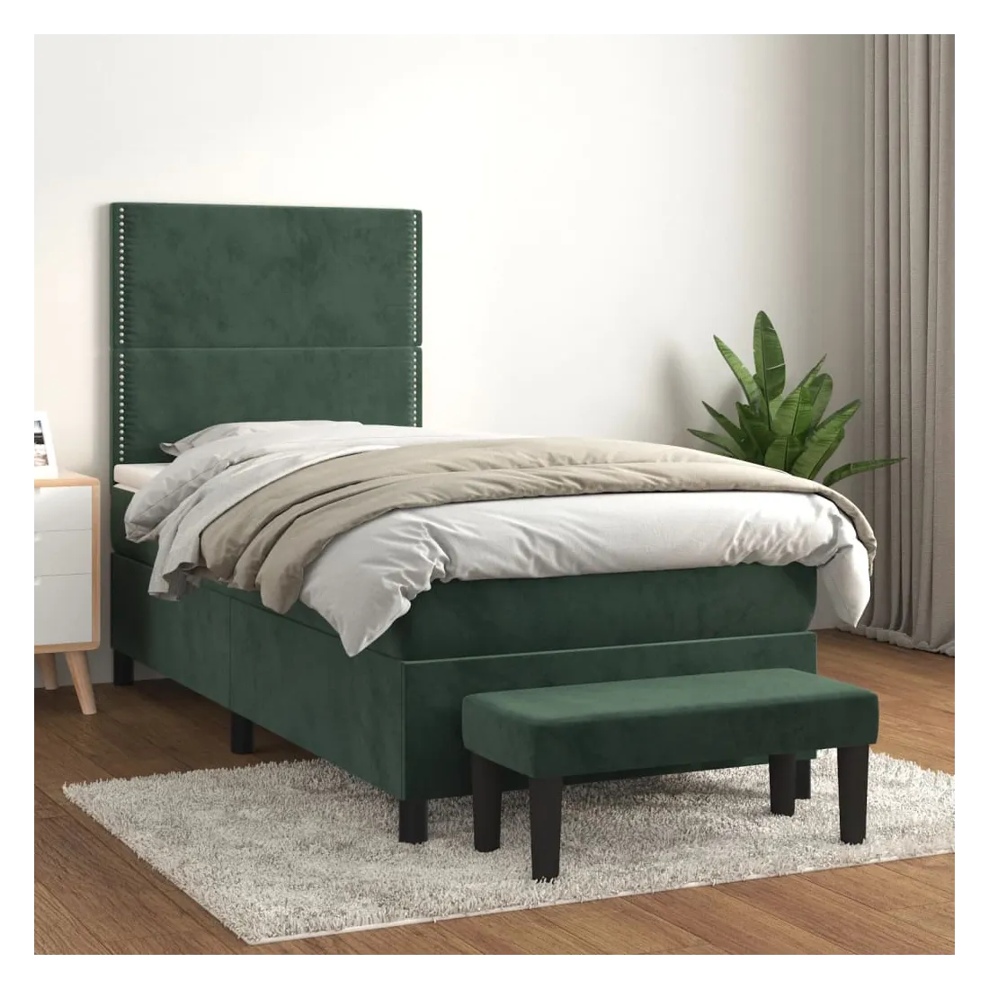 Sommier à lattes de lit avec matelas Vert foncé 90x200 cm