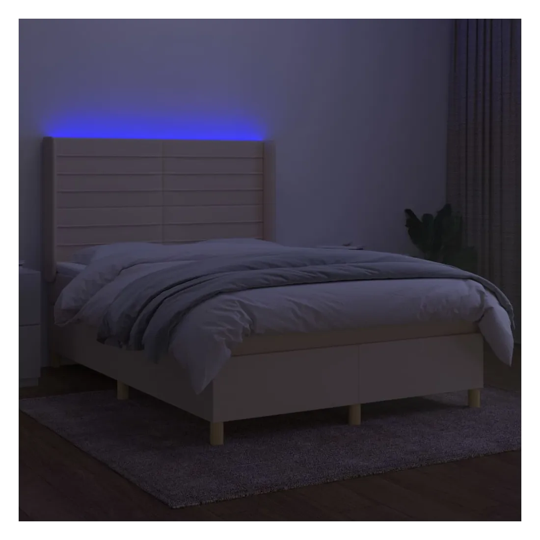Utilisez ce sommier tapissier avec matelas et LED pour profiter d'un sommeil réparateur ! C'est le point central de votre chambre à coucher. Tissu durable : le tissu présente un aspect simple et épuré, et il est respirant et durable.Tête de lit pratique : la tête de lit est réglable en hauteur selon vos préférences. La tête de lit vous offre un excellent soutien du dos lorsque vous êtes assis dans votre lit pour lire ou regarder la télévision.Bande LED colorée : apportez de l'éclairage dans l'obscurité avec des lumières LED colorées !Matelas à ressorts ensachés : le ressort ensaché individuel intégré est connu pour sa très haute qualité tout en assurant un haut niveau de durabilité et d'adaptabilité. Il peut absorber efficacement le bruit et les chocs causés par les sauts et les rotations.Protège-matelas doux pour la peau : le protège-matelas est recouvert d'un tissu résistant et doux pour la peau, ce qui le rend souple et confortable. Remarque :Pour des raisons d'hygiène, le matelas ne peut pas être retourné si l'emballage est retiré ou ouvert.Seule la partie avec un symbole de ciseaux peut être coupée et seule la partie avec l'USB continuera à fonctionner comme avant.Chaque produit est livré avec un manuel de montage dans la boîte pour un montage facile.Ce produit est doté d'un connecteur USB, mais la source d'alimentation certifiée de USB 5V n'est pas incluse.