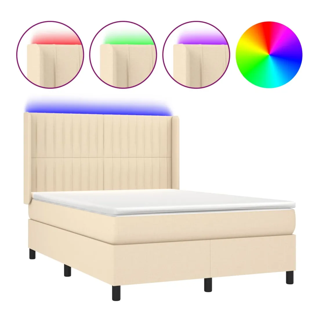 Utilisez ce sommier tapissier avec matelas et LED pour profiter d'un sommeil réparateur ! C'est le point central de votre chambre à coucher. Tissu durable : le tissu présente un aspect simple et épuré, et il est respirant et durable.Tête de lit pratique : la tête de lit est réglable en hauteur selon vos préférences. La tête de lit vous offre un excellent soutien du dos lorsque vous êtes assis dans votre lit pour lire ou regarder la télévision.Bande LED colorée : apportez de l'éclairage dans l'obscurité avec des lumières LED colorées !Matelas à ressorts ensachés : le ressort ensaché individuel intégré est connu pour sa très haute qualité tout en assurant un haut niveau de durabilité et d'adaptabilité. Il peut absorber efficacement le bruit et les chocs causés par les sauts et les rotations.Protège-matelas doux pour la peau : le protège-matelas est recouvert d'un tissu résistant et doux pour la peau, ce qui le rend souple et confortable. Remarque :Pour des raisons d'hygiène, le matelas ne peut pas être retourné si l'emballage est retiré ou ouvert.Seule la partie avec un symbole de ciseaux peut être coupée et seule la partie avec l'USB continuera à fonctionner comme avant.Chaque produit est livré avec un manuel de montage dans la boîte pour un montage facile.Ce produit est doté d'un connecteur USB, mais la source d'alimentation certifiée de USB 5V n'est pas incluse.