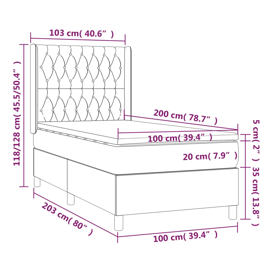 • Dimensions totales : 203 x 103 x 118/128 cm (L x l x H)