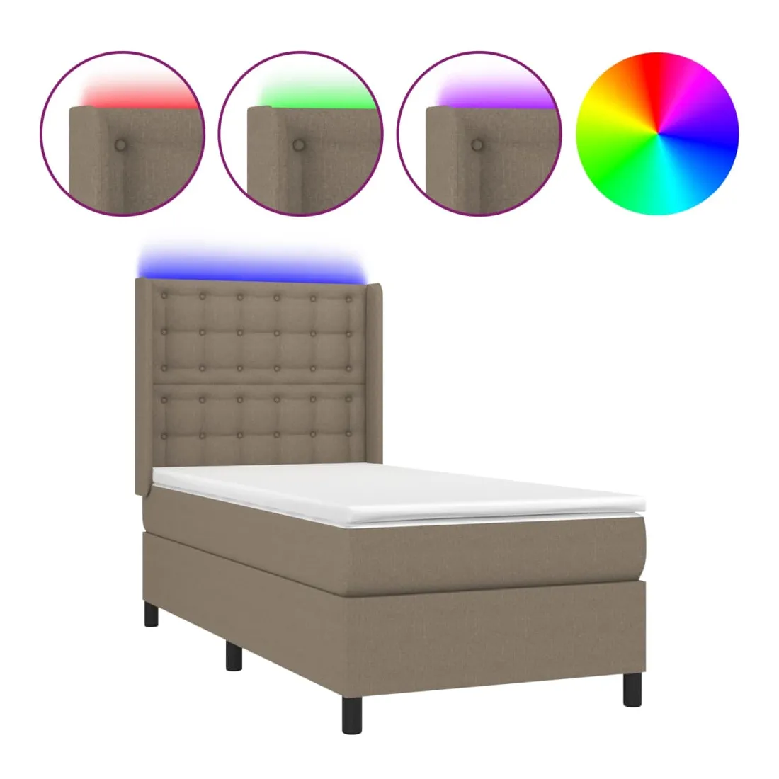 Sommier à lattes de lit matelas et LED Taupe 90x190 cm Tissu