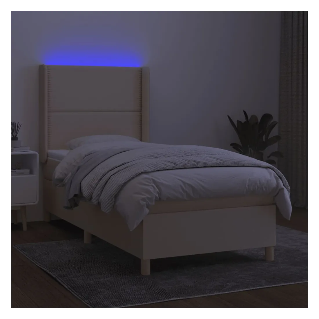 Sommier à lattes de lit matelas et LED Crème 100x200 cm Tissu