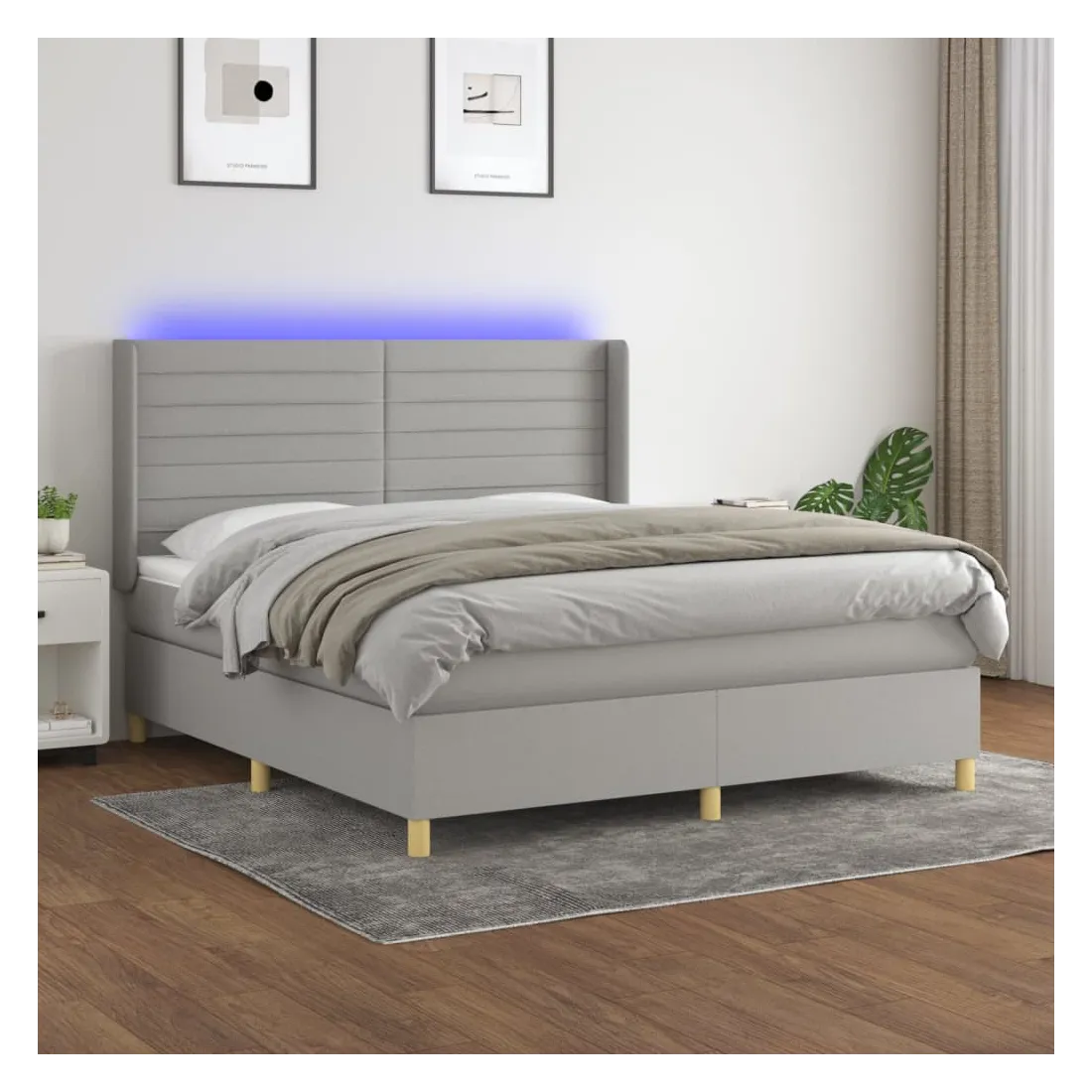 Utilisez ce sommier tapissier avec matelas et LED pour profiter d'un sommeil réparateur ! C'est le point central de votre chambre à coucher. Tissu durable : le tissu présente un aspect simple et épuré, et il est respirant et durable.Tête de lit pratique : la tête de lit est réglable en hauteur selon vos préférences. La tête de lit vous offre un excellent soutien du dos lorsque vous êtes assis dans votre lit pour lire ou regarder la télévision.Bande LED colorée : apportez de l'éclairage dans l'obscurité avec des lumières LED colorées !Matelas à ressorts ensachés : le ressort ensaché individuel intégré est connu pour sa très haute qualité tout en assurant un haut niveau de durabilité et d'adaptabilité. Il peut absorber efficacement le bruit et les chocs causés par les sauts et les rotations.Protège-matelas doux pour la peau : le protège-matelas est recouvert d'un tissu résistant et doux pour la peau, ce qui le rend souple et confortable. Remarque :Pour des raisons d'hygiène, le matelas ne peut pas être retourné si l'emballage est retiré ou ouvert.Seule la partie avec un symbole de ciseaux peut être coupée et seule la partie avec l'USB continuera à fonctionner comme avant.Chaque produit est livré avec un manuel de montage dans la boîte pour un montage facile.Ce produit est doté d'un connecteur USB, mais la source d'alimentation certifiée de USB 5V n'est pas incluse.