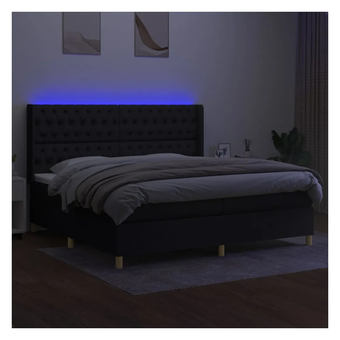 Utilisez ce sommier tapissier avec matelas et LED pour profiter d'un sommeil réparateur ! C'est le point central de votre chambre à coucher. Tissu durable : le tissu présente un aspect simple et épuré, et il est respirant et durable.Tête de lit pratique : la tête de lit est réglable en hauteur selon vos préférences. La tête de lit vous offre un excellent soutien du dos lorsque vous êtes assis dans votre lit pour lire ou regarder la télévision.Bande LED colorée : apportez de l'éclairage dans l'obscurité avec des lumières LED colorées !Matelas à ressorts ensachés : le ressort ensaché individuel intégré est connu pour sa très haute qualité tout en assurant un haut niveau de durabilité et d'adaptabilité. Il peut absorber efficacement le bruit et les chocs causés par les sauts et les rotations.Protège-matelas doux pour la peau : le protège-matelas est recouvert d'un tissu résistant et doux pour la peau, ce qui le rend souple et confortable. Remarque :Pour des raisons d'hygiène, le matelas ne peut pas être retourné si l'emballage est retiré ou ouvert.Seule la partie avec un symbole de ciseaux peut être coupée et seule la partie avec l'USB continuera à fonctionner comme avant.Chaque produit est livré avec un manuel de montage dans la boîte pour un montage facile.Ce produit est doté d'un connecteur USB, mais la source d'alimentation certifiée de USB 5V n'est pas incluse.