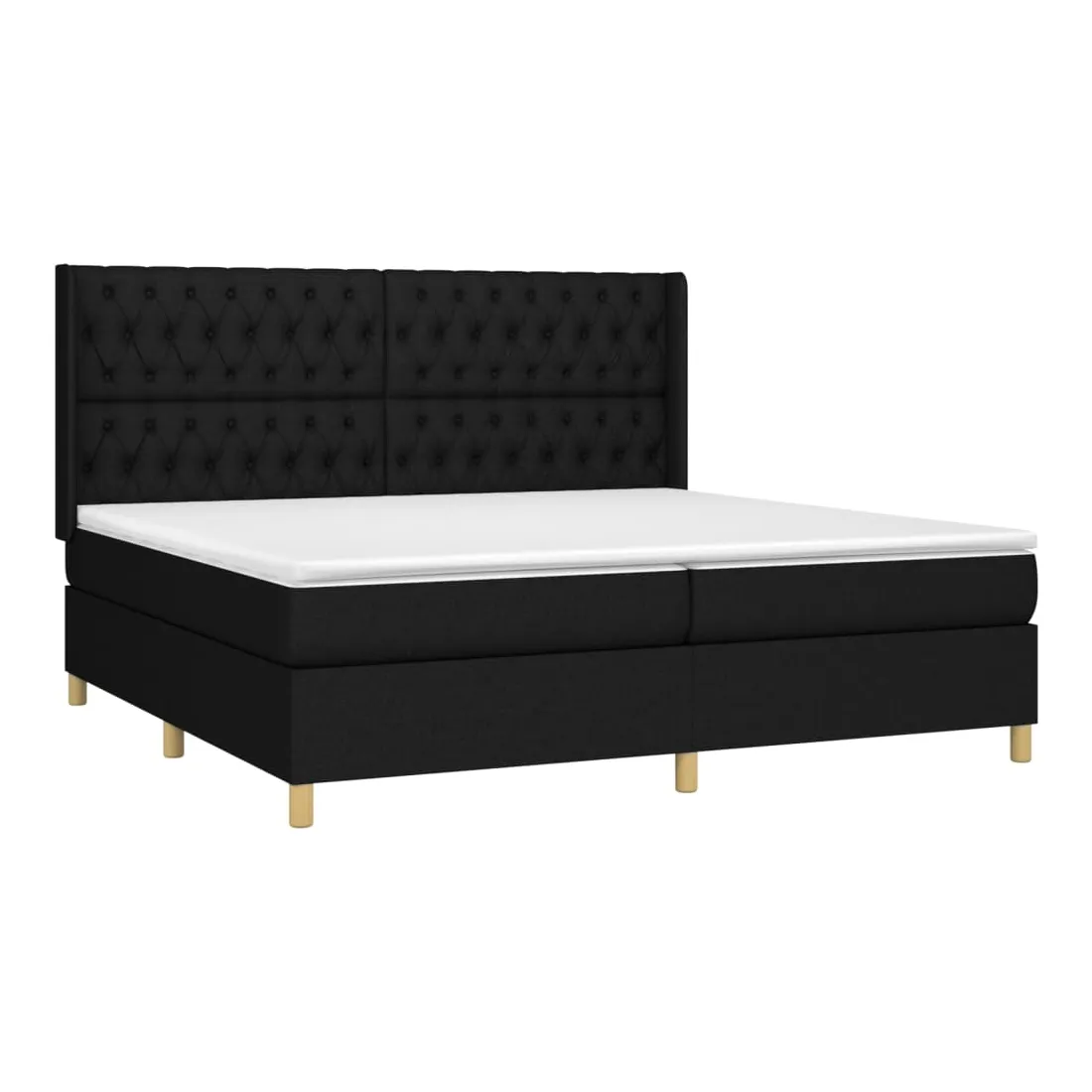 Sommier à lattes de lit matelas et LED Noir 200x200 cm Tissu