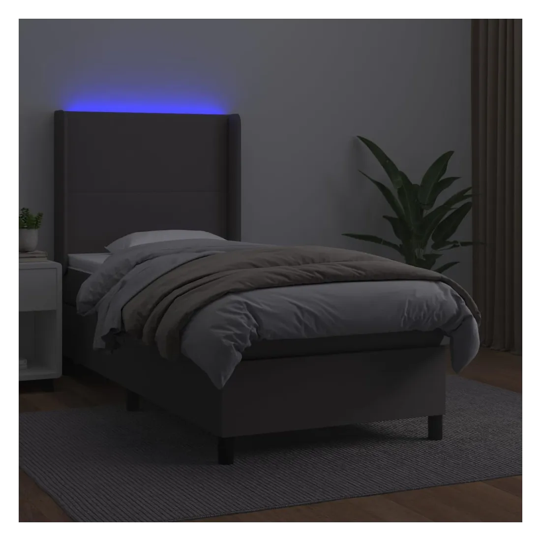 Sommier à lattes de lit matelas LED Gris 80x200 cm Similicuir