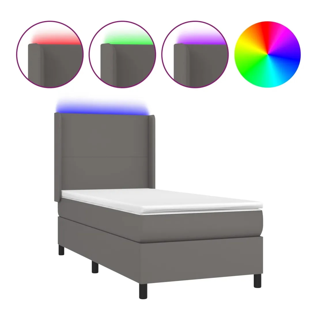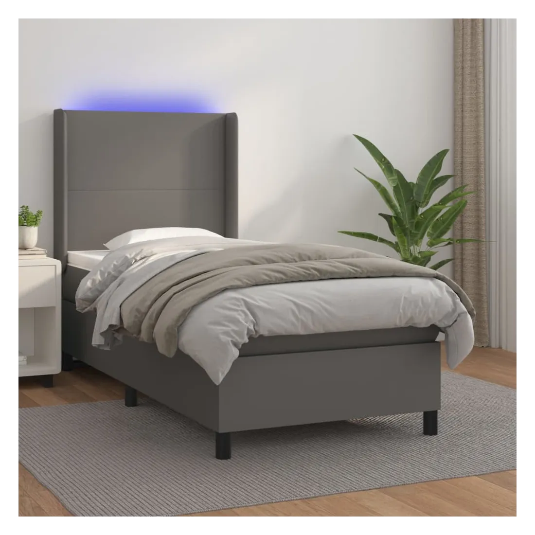 Sommier à lattes de lit matelas LED Gris 90x200 cm Similicuir