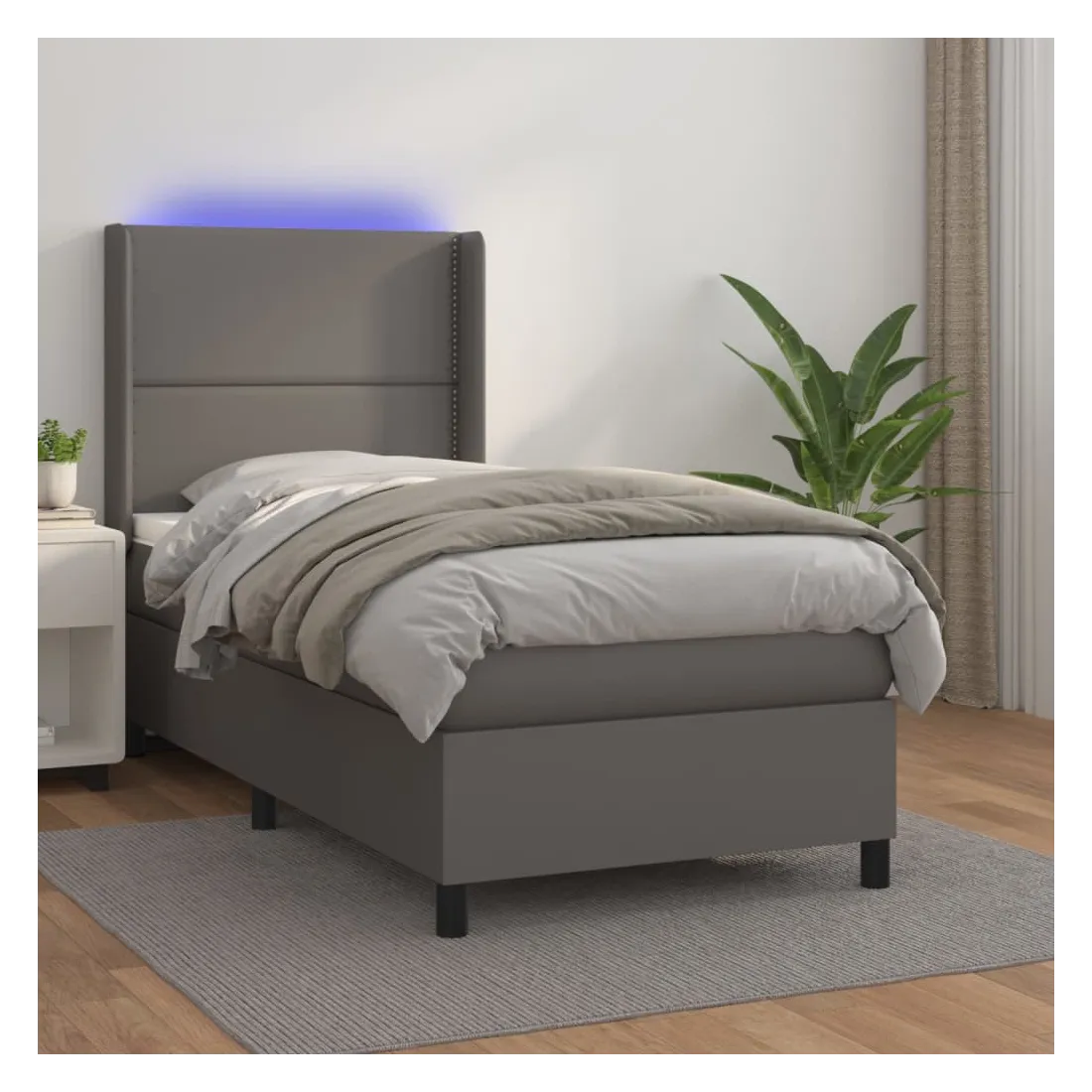 Utilisez ce sommier tapissier avec matelas et LED pour profiter d'un sommeil réparateur ! C'est le point central de votre chambre à coucher. Similicuir durable : le similicuir de qualité supérieure est un matériau très durable. Il est résistant aux taches, ce qui le rend facile à nettoyer avec un chiffon humide. La surface lisse donne également un aspect luxueux et la beauté du cuir véritable.Tête de lit pratique : la tête de lit est réglable en hauteur selon vos préférences. La tête de lit vous offre un excellent soutien du dos lorsque vous êtes assis dans votre lit pour lire ou regarder la télévision.Bande LED colorée : apportez de l'éclairage dans l'obscurité avec des lumières LED colorées !Matelas à ressorts ensachés : le ressort ensaché individuel intégré est connu pour sa très haute qualité tout en assurant un haut niveau de durabilité et d'adaptabilité. Il peut absorber efficacement le bruit et les chocs causés par les sauts et les rotations.Protège-matelas doux pour la peau : le protège-matelas est recouvert d'un tissu résistant et doux pour la peau, ce qui le rend souple et confortable. Remarque :Pour des raisons d'hygiène, le matelas ne peut pas être retourné si l'emballage est retiré ou ouvert.Seule la partie avec un symbole de ciseaux peut être coupée et seule la partie avec l'USB continuera à fonctionner comme avant.Chaque produit est livré avec un manuel de montage dans la boîte pour un montage facile.Ce produit est doté d'un connecteur USB, mais la source d'alimentation certifiée de USB 5V n'est pas incluse.