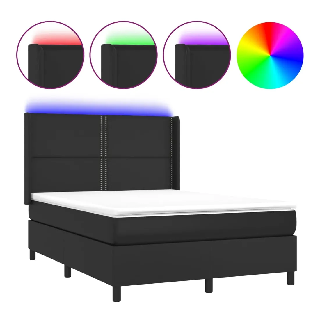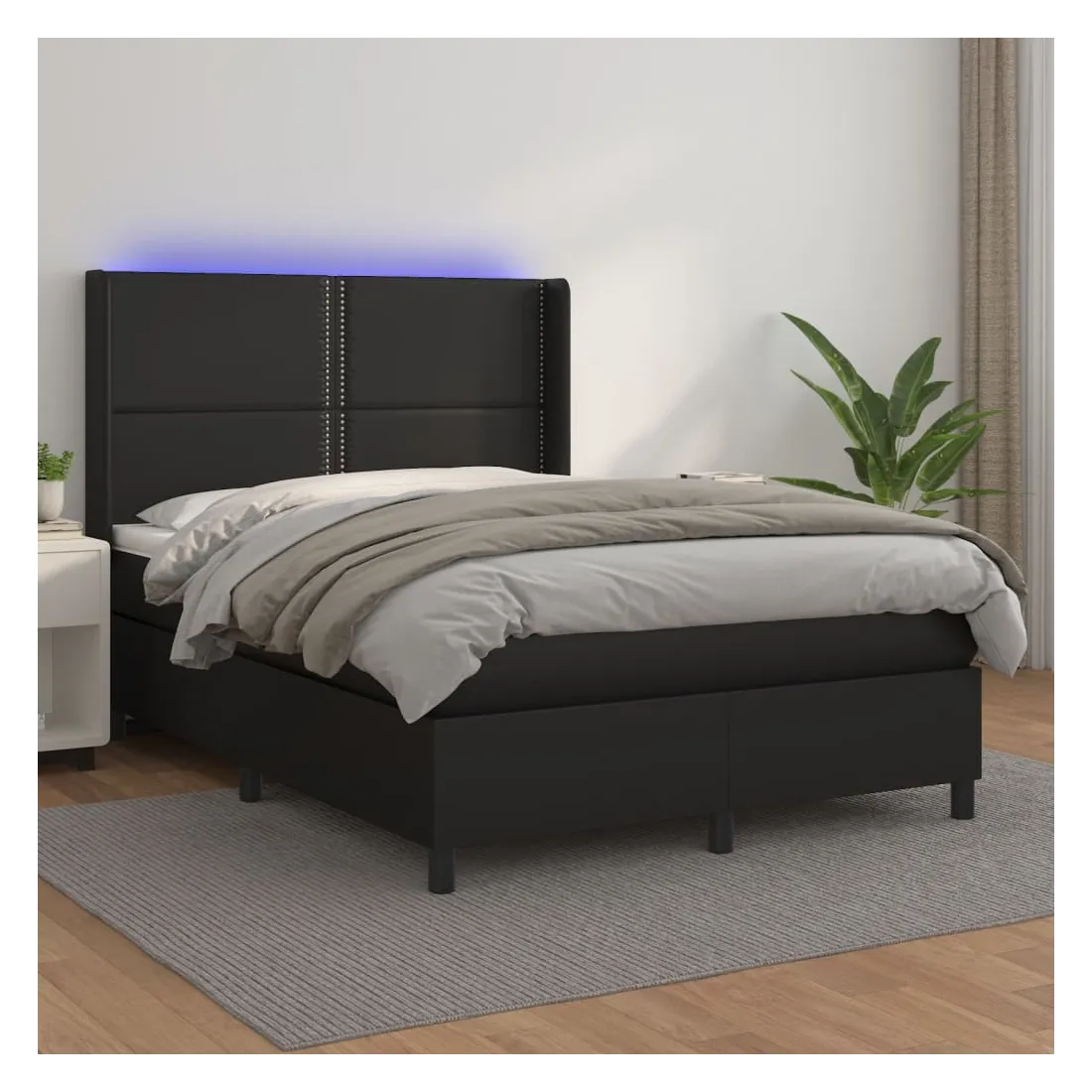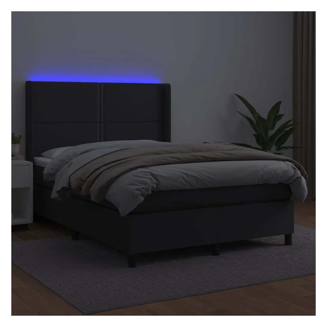 Sommier à lattes de lit matelas LED Noir 140x200cm Similicuir