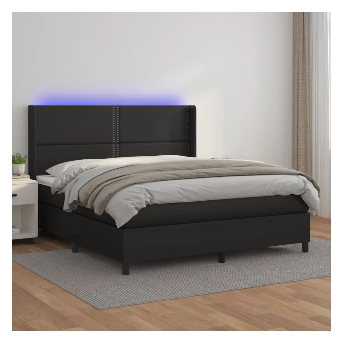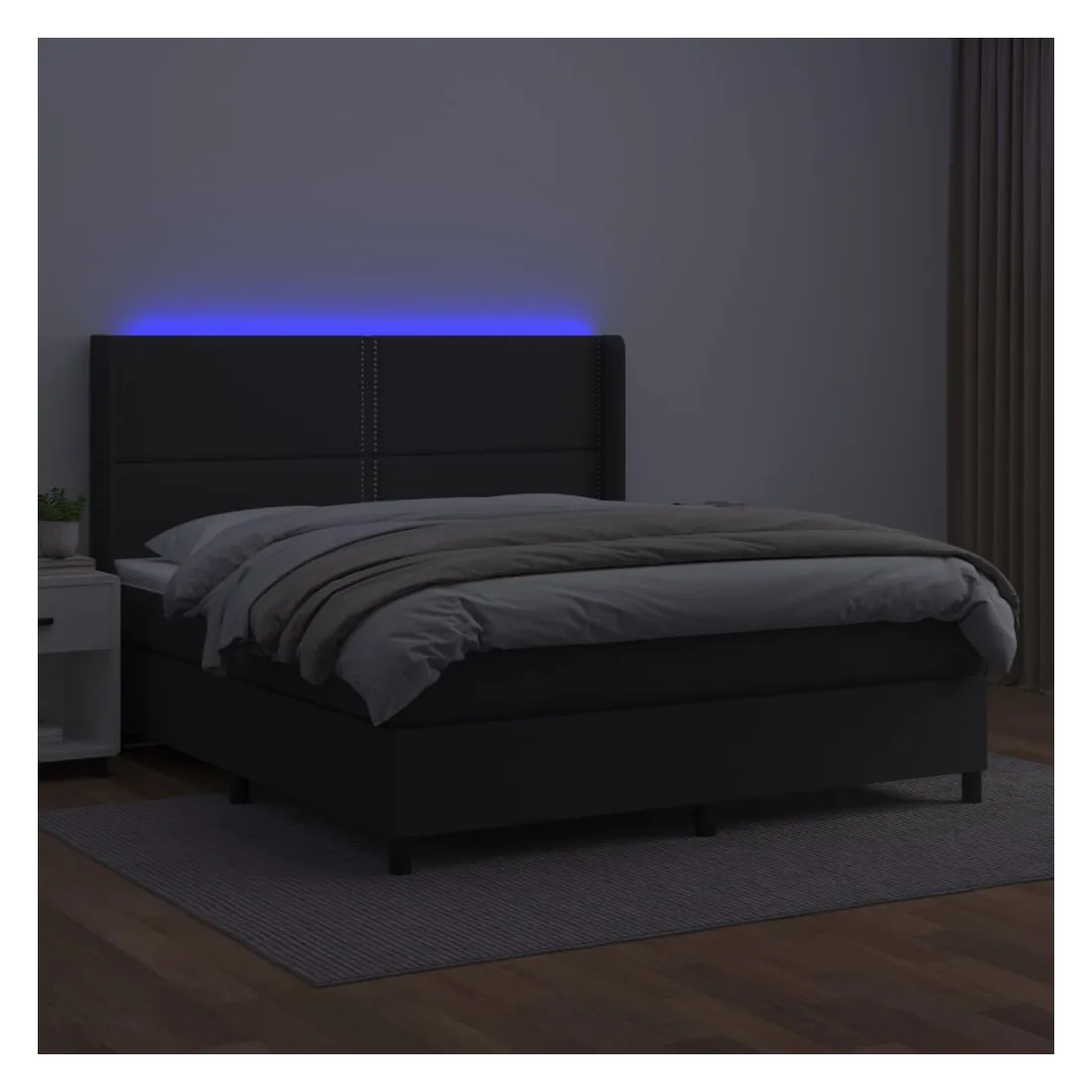 Utilisez ce sommier tapissier avec matelas et LED pour profiter d'un sommeil réparateur ! C'est le point central de votre chambre à coucher. Similicuir durable : le similicuir de qualité supérieure est un matériau très durable. Il est résistant aux taches, ce qui le rend facile à nettoyer avec un chiffon humide. La surface lisse donne également un aspect luxueux et la beauté du cuir véritable.Tête de lit pratique : la tête de lit est réglable en hauteur selon vos préférences. La tête de lit vous offre un excellent soutien du dos lorsque vous êtes assis dans votre lit pour lire ou regarder la télévision.Bande LED colorée : apportez de l'éclairage dans l'obscurité avec des lumières LED colorées !Matelas à ressorts ensachés : le ressort ensaché individuel intégré est connu pour sa très haute qualité tout en assurant un haut niveau de durabilité et d'adaptabilité. Il peut absorber efficacement le bruit et les chocs causés par les sauts et les rotations.Protège-matelas doux pour la peau : le protège-matelas est recouvert d'un tissu résistant et doux pour la peau, ce qui le rend souple et confortable. Remarque :Pour des raisons d'hygiène, le matelas ne peut pas être retourné si l'emballage est retiré ou ouvert.Seule la partie avec un symbole de ciseaux peut être coupée et seule la partie avec l'USB continuera à fonctionner comme avant.Chaque produit est livré avec un manuel de montage dans la boîte pour un montage facile.Ce produit est doté d'un connecteur USB, mais la source d'alimentation certifiée de USB 5V n'est pas incluse.