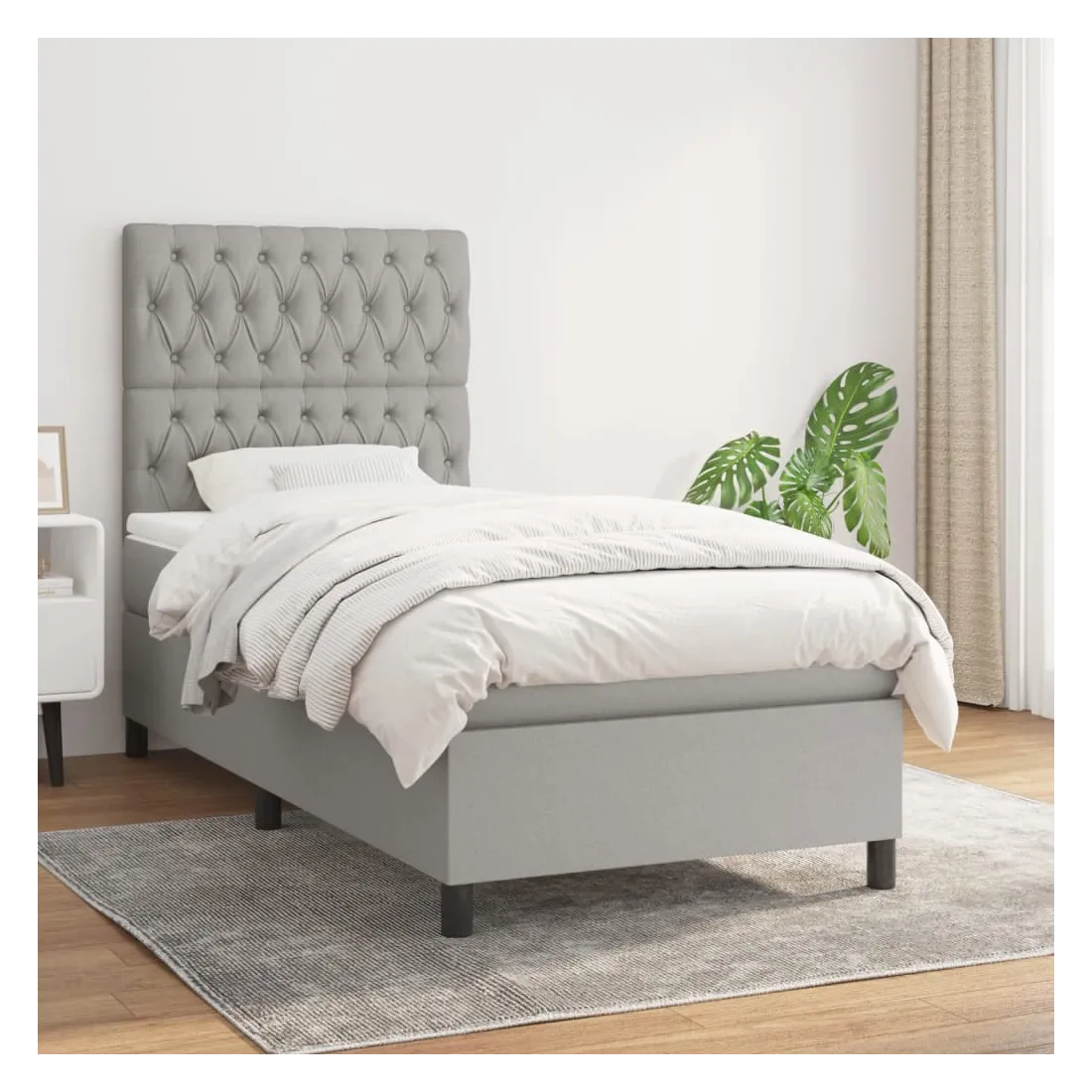 Sommier à lattes de lit avec matelas Gris clair 100x200cm Tissu