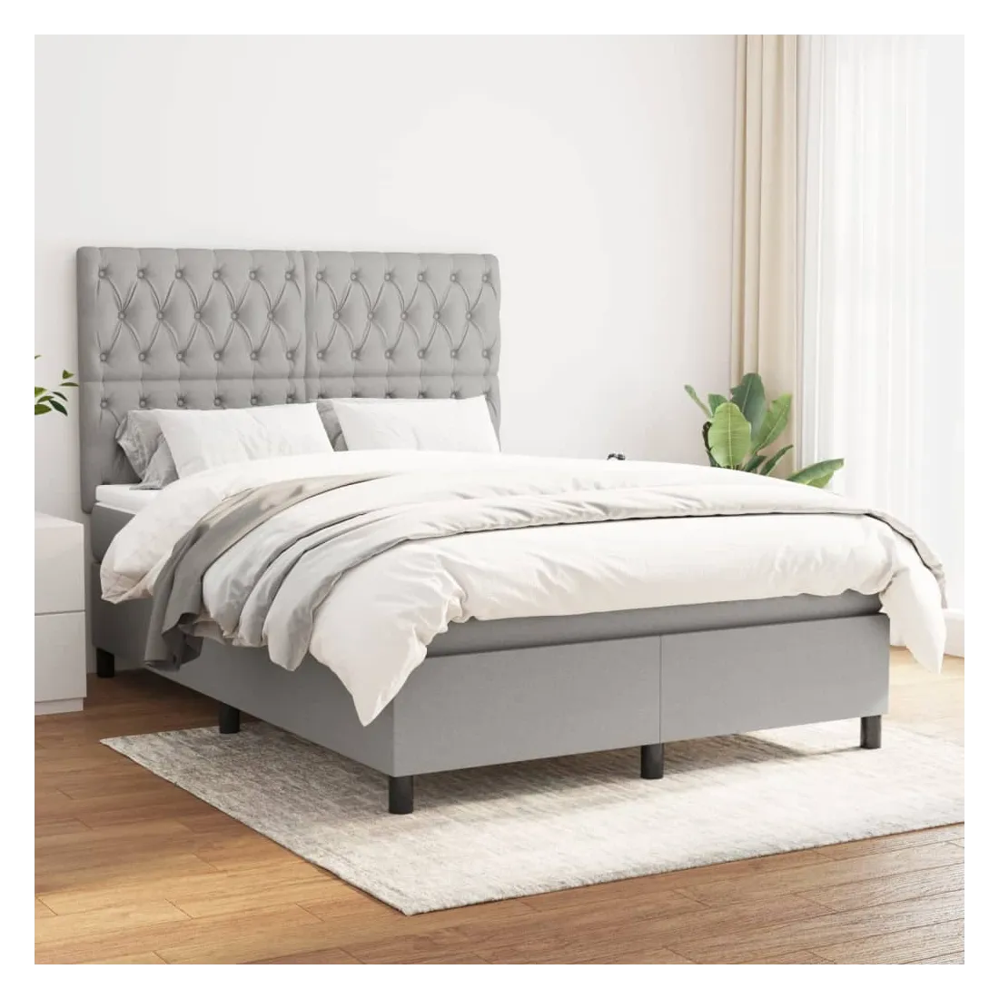 Sommier à lattes de lit avec matelas Gris clair 140x190cm Tissu