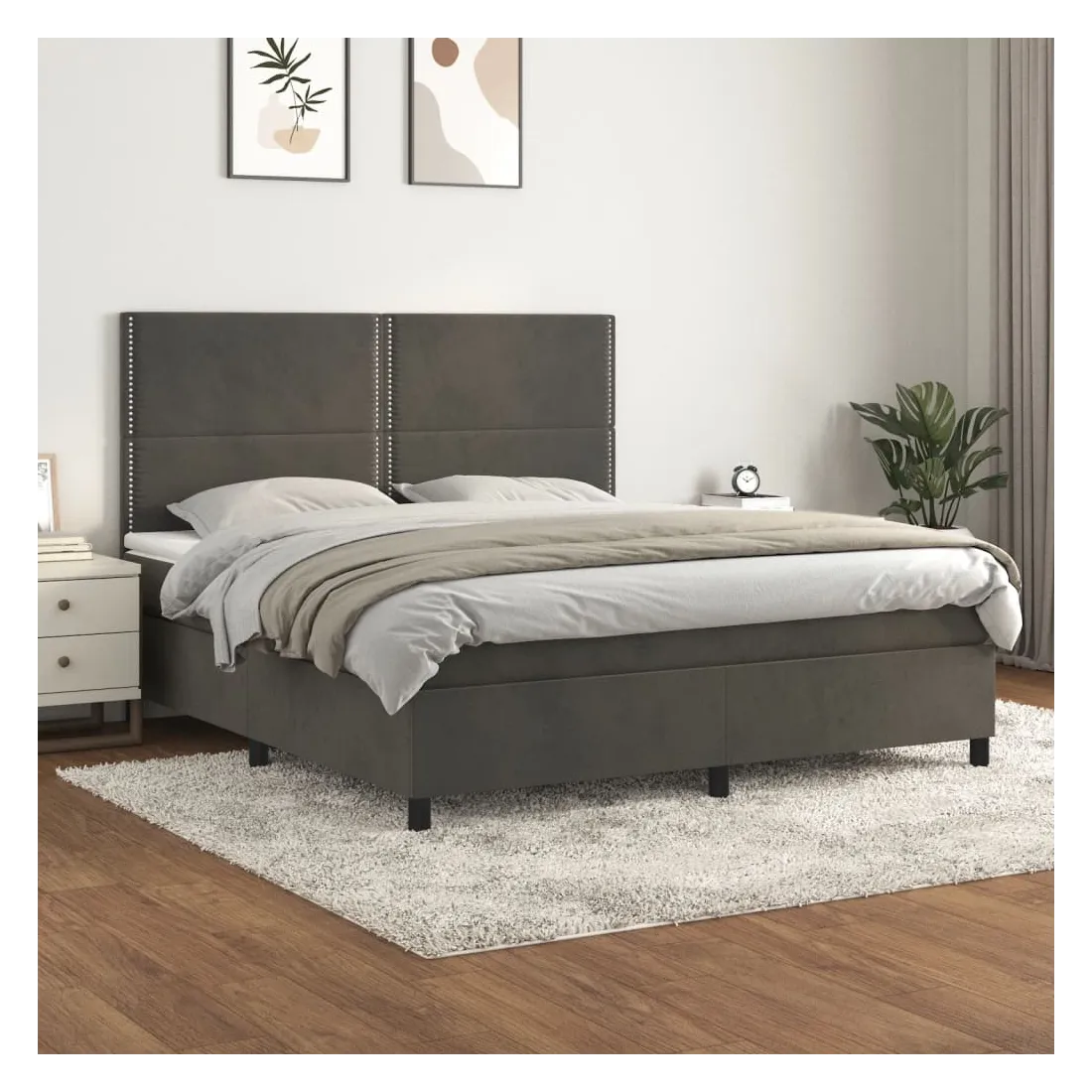 Utilisez ce lit à sommier pour profiter d'une nuit de sommeil réparatrice ! Il vous offre une relaxation maximale et un sommeil agréable. Velours doux : le velours est un tissu doux et luxueux qui se reconnaît à son tas dense de fibres uniformément coupées qui ont une touche lisse. Le tissu en velours présente un toucher doux distinctif, ce qui le rend confortable au toucher.Tête de lit pratique : la tête de lit est réglable en hauteur selon vos préférences. La tête de lit vous offre un excellent soutien du dos lorsque vous êtes assis dans votre lit pour lire ou regarder la télévision.Matelas à ressorts ensachés : le ressort ensaché individuel intégré est connu pour sa très haute qualité tout en assurant un haut niveau de durabilité et d'adaptabilité. Il peut absorber efficacement le bruit et les chocs causés par les sauts et les rotations.Support moyen-dur : ce matelas de lit offre une stabilité accrue et juste le niveau de fermeté sans sacrifier le confort. Il est donc idéal pour les personnes qui dorment sur le dos ou sur le ventre.Protège-matelas doux pour la peau : le protège-matelas est recouvert d'un tissu résistant et doux pour la peau, ce qui le rend souple et confortable. Remarque :Pour des raisons d'hygiène, le matelas ne peut pas être retourné si l'emballage est retiré ou ouvert.Chaque produit est livré avec un manuel de montage dans la boîte pour un montage facile.