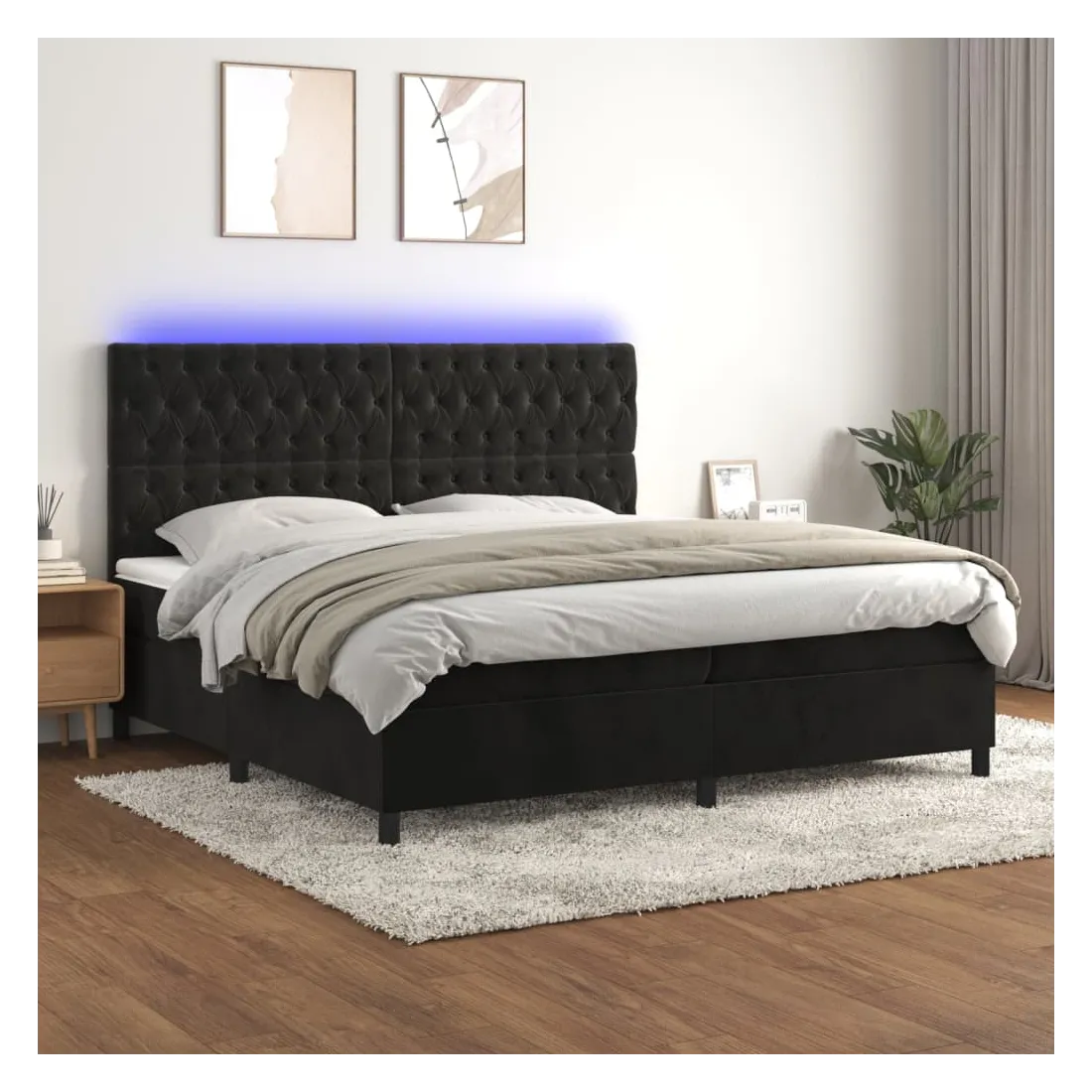 vidaXLUtilisez ce sommier tapissier avec matelas et LED pour profiter d'un sommeil réparateur ! C'est le point central de votre chambre à coucher. Velours doux : le velours est un tissu doux et luxueux qui se reconnaît à son tas dense de fibres uniformément coupées qui ont une touche lisse. Le tissu en velours présente un toucher doux distinctif, ce qui le rend confortable au toucher.Tête de lit pratique : la tête de lit est réglable en hauteur selon vos préférences. La tête de lit vous offre un excellent soutien du dos lorsque vous êtes assis dans votre lit pour lire ou regarder la télévision.Bande LED colorée : apportez de l'éclairage dans l'obscurité avec des lumières LED colorées !Matelas à ressorts ensachés : le ressort ensaché individuel intégré est connu pour sa très haute qualité tout en assurant un haut niveau de durabilité et d'adaptabilité. Il peut absorber efficacement le bruit et les chocs causés par les sauts et les rotations.Protège-matelas doux pour la peau : le protège-matelas est recouvert d'un tissu résistant et doux pour la peau, ce qui le rend souple et confortable. Remarque :Pour des raisons d'hygiène, le matelas ne peut pas être retourné si l'emballage est retiré ou ouvert.Seule la partie avec un symbole de ciseaux peut être coupée et seule la partie avec l'USB continuera à fonctionner comme avant.Chaque produit est livré avec un manuel de montage dans la boîte pour un montage facile.Ce produit est doté d'un connecteur USB, mais la source d'alimentation certifiée de USB 5V n'est pas incluse.