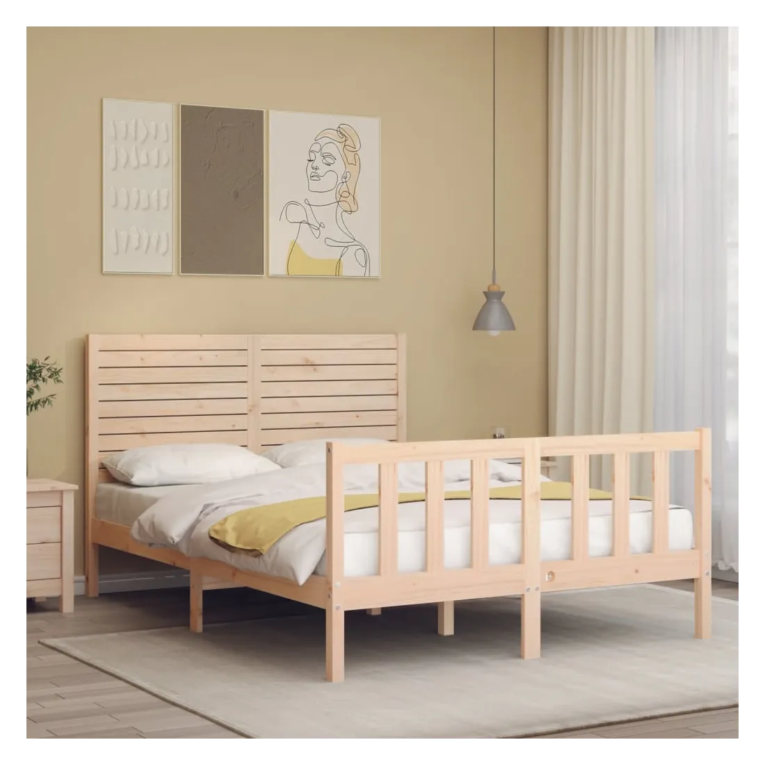 Profitez d'une bonne nuit de sommeil dans ce cadre de lit en bois ! Il sera un supplément pratique et décoratif à votre intérieur. Matériau durable : le bois de pin massif est un matériau naturel magnifique. Le bois de pin a un grain droit et les nœuds donnent au matériau son aspect caractéristique et rustique. Fabriqué en pin massif, ce lit est robuste et durable.Lattes en contreplaqué : les lattes en contreplaqué assurent une bonne répartition du poids, garantissant à votre matelas le soutien et la respirabilité dont il a tant besoin.Tête de lit et pied de lit fonctionnels : la tête et le pied de lit du lit en bois peuvent maintenir votre matelas en place. De plus, la tête de lit vous offre un excellent soutien du dos lorsque vous vous asseyez dans le lit pour lire ou regarder la télévision. Bon à savoir : Un matelas n'est pas inclus avec ce lit. Nous offrons une sélection variée de matelas. Vous pouvez consulter notre boutique pour trouver un matelas assorti.Certaines pièces de tête de lit sont emballées dans les cartons du cadre de lit en raison du manque d’espace.